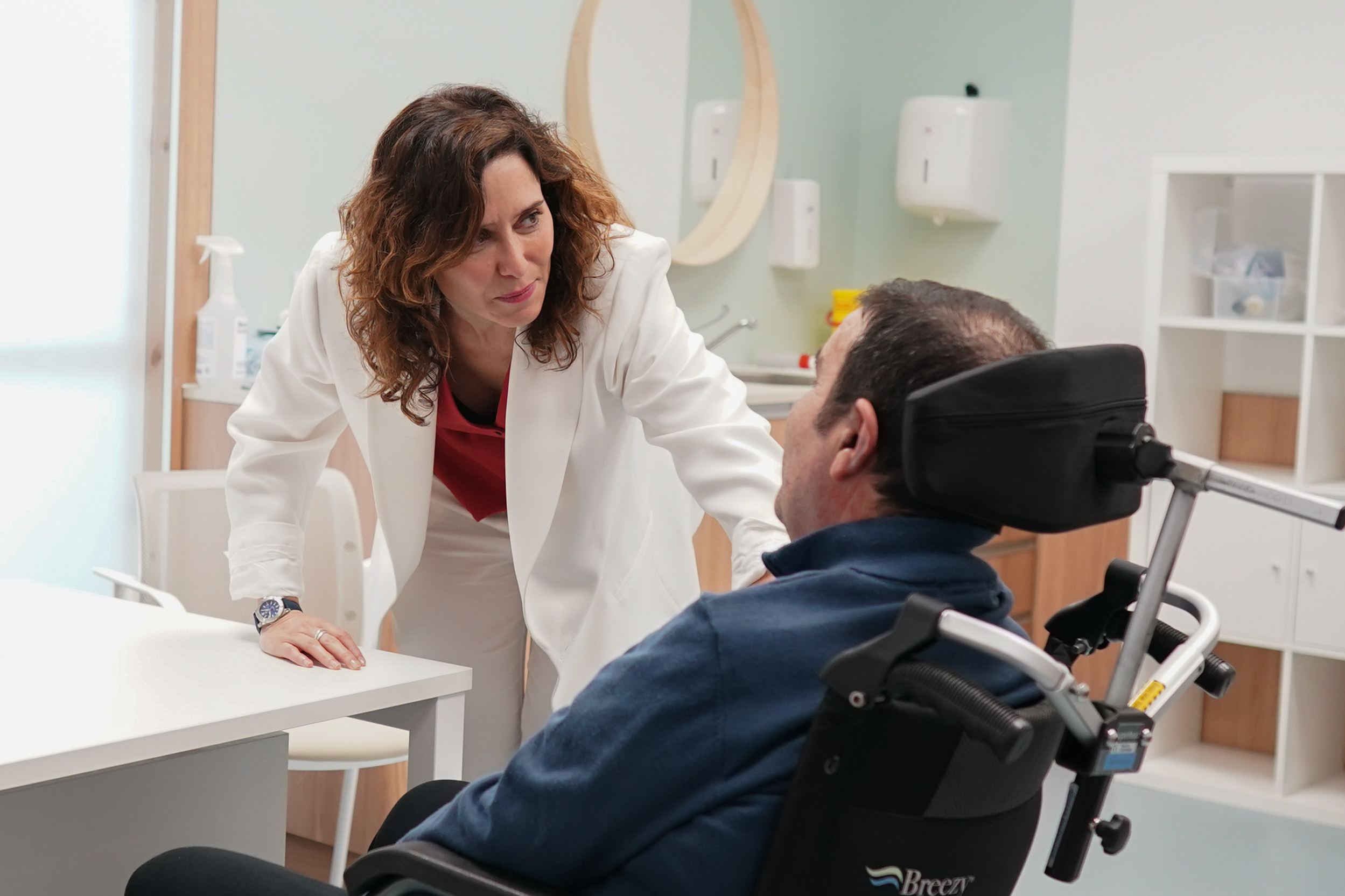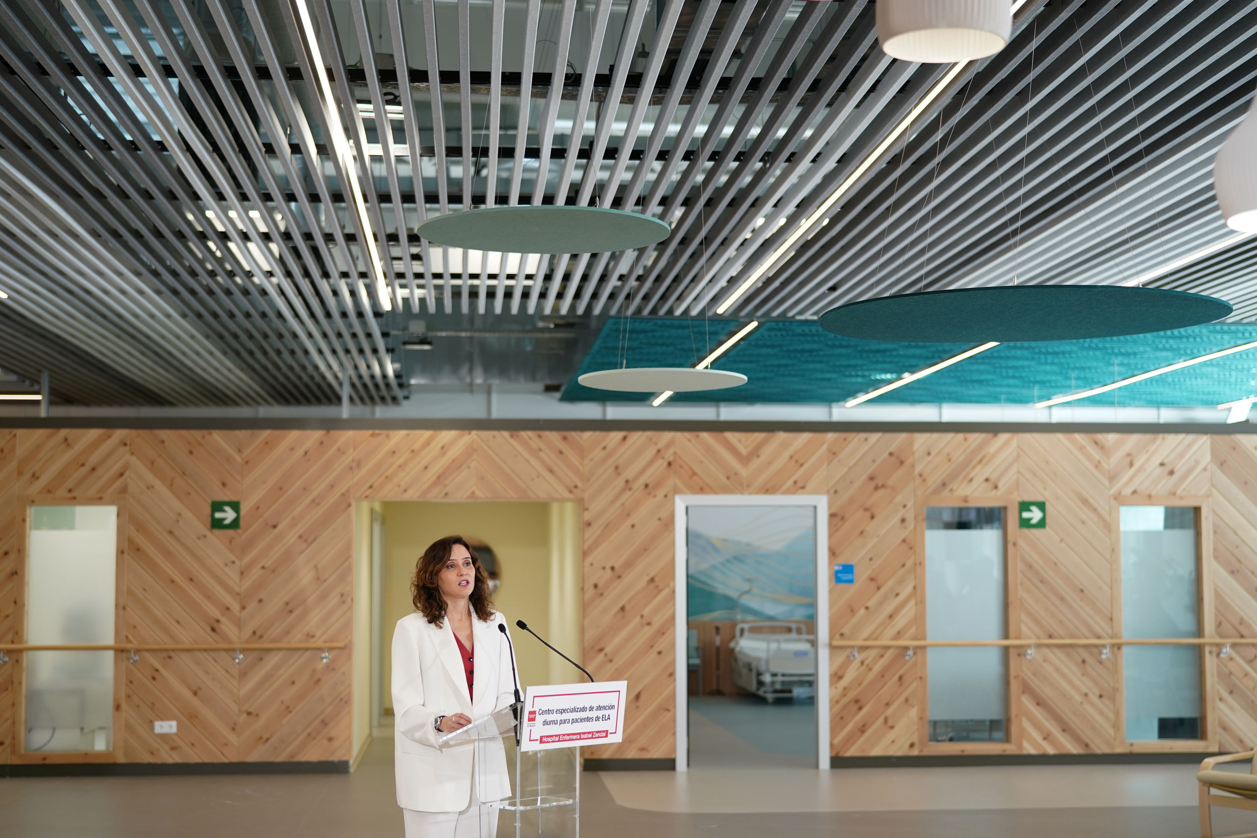 La presidenta de la Comunidad de Madrid, Isabel Díaz Ayuso, visitó este jueves el nuevo Centro Especializado de Atención Diurna para la Esclerosis Lateral Amiotrófica (ELA), ubicado en el Hospital público Enfermera Isabel Zendal de la capital.