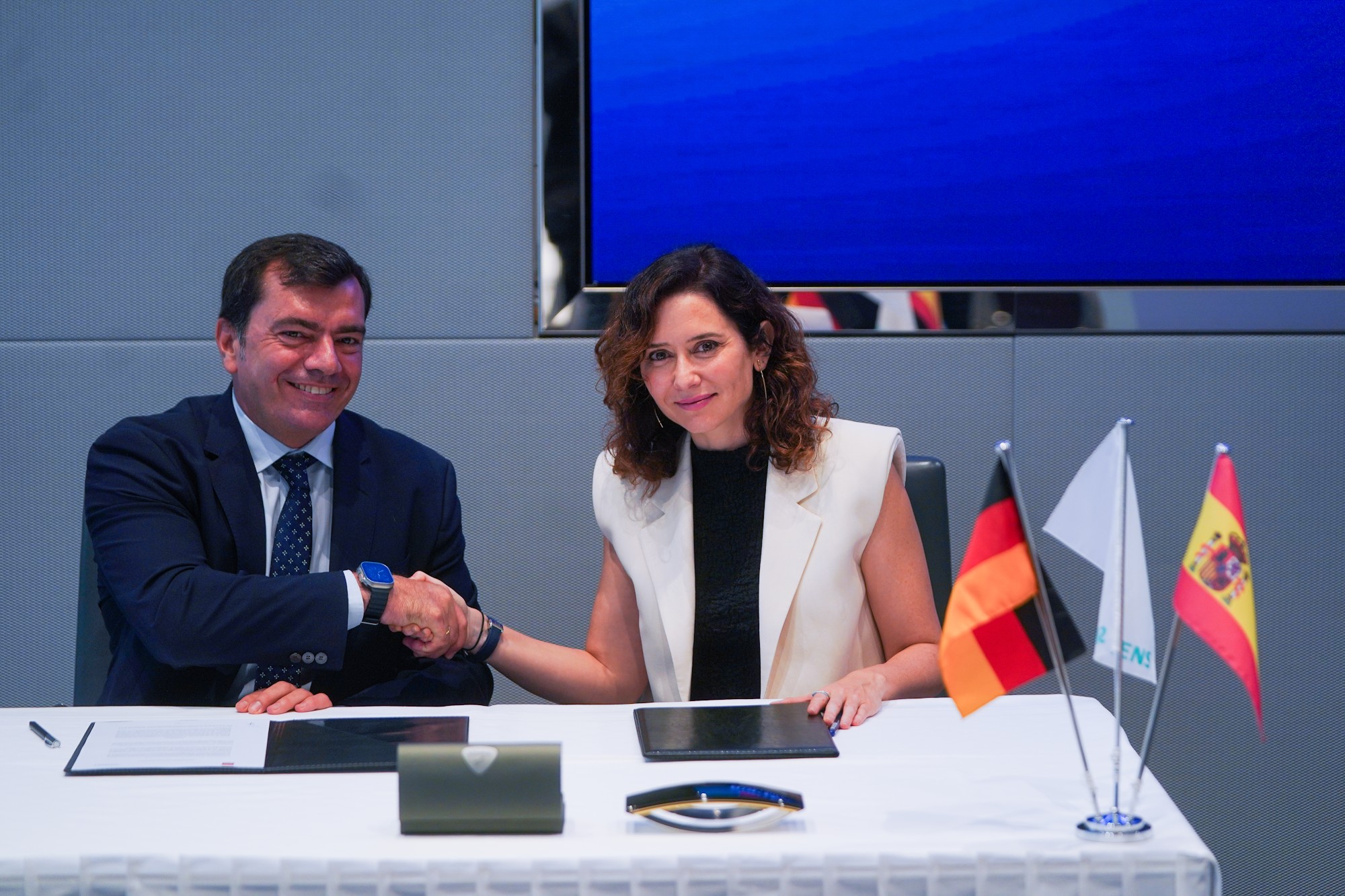 Ayuso ha firmado en Múnich un acuerdo para “multiplicar todo el potencial y el talento industrial y tecnológico” de la multinacional alemana en la región. La jefa del Ejecutivo autonómico ha suscrito este convenio de colaboración con el presidente y CEO de Siemens España y Siemens Mobility SouthWest Europe, Agustín Escobar, gracias al que expertos de la compañía impartirán formación a profesionales en centros adscritos a la Administración regional vinculada a nuevas tecnologías como Inteligencia Artificial, Ciberseguridad o Conectividad.