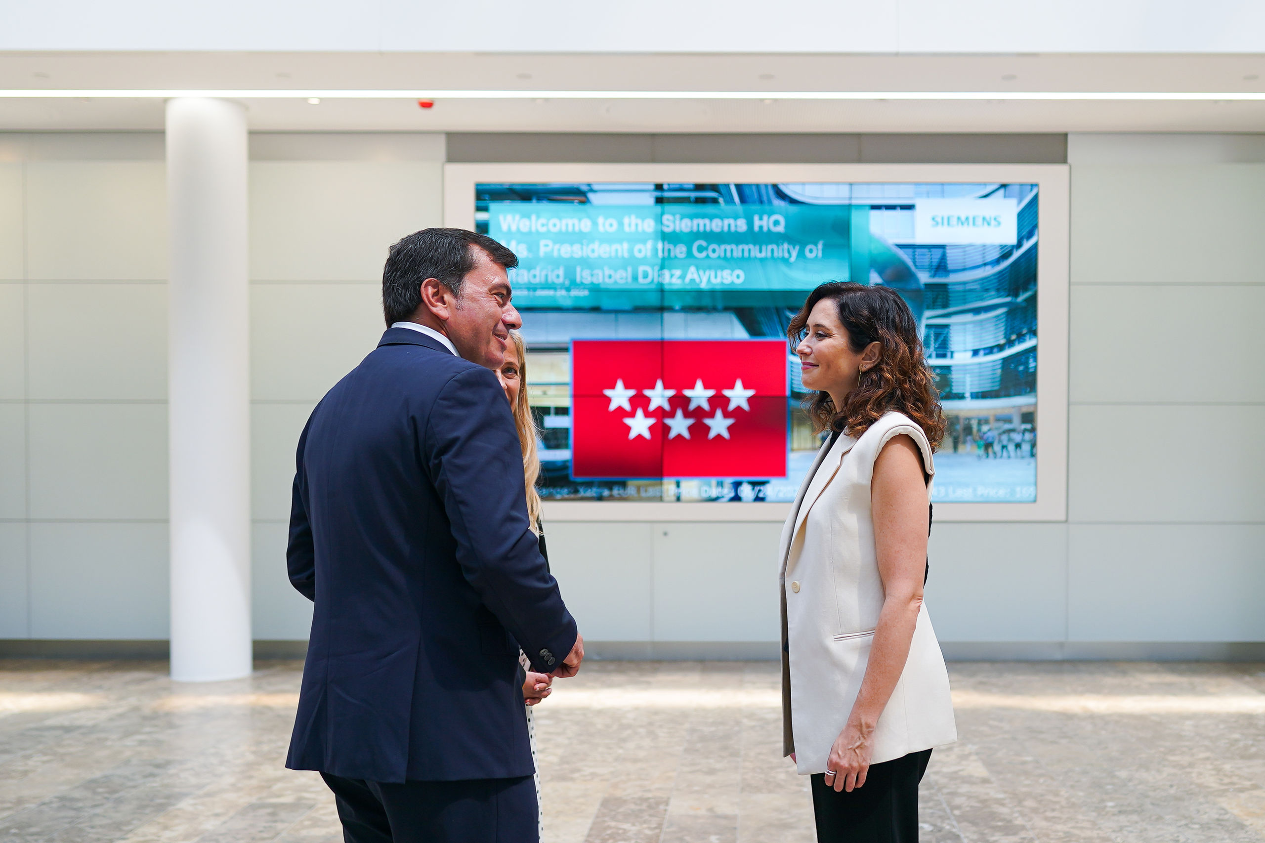 Ayuso ha agradecido la apuesta de Siemens por la región, después de que la empresa se haya comprometido a la apertura en 2028 de su nueva sede en el barrio de Las Tablas, en la capital. “Desde que estrechamos lazos y nos comprometimos albergar esta nueva sede, hemos seguido avanzando y hemos hallado el camino para que esto sea una realidad dentro de muy poco".