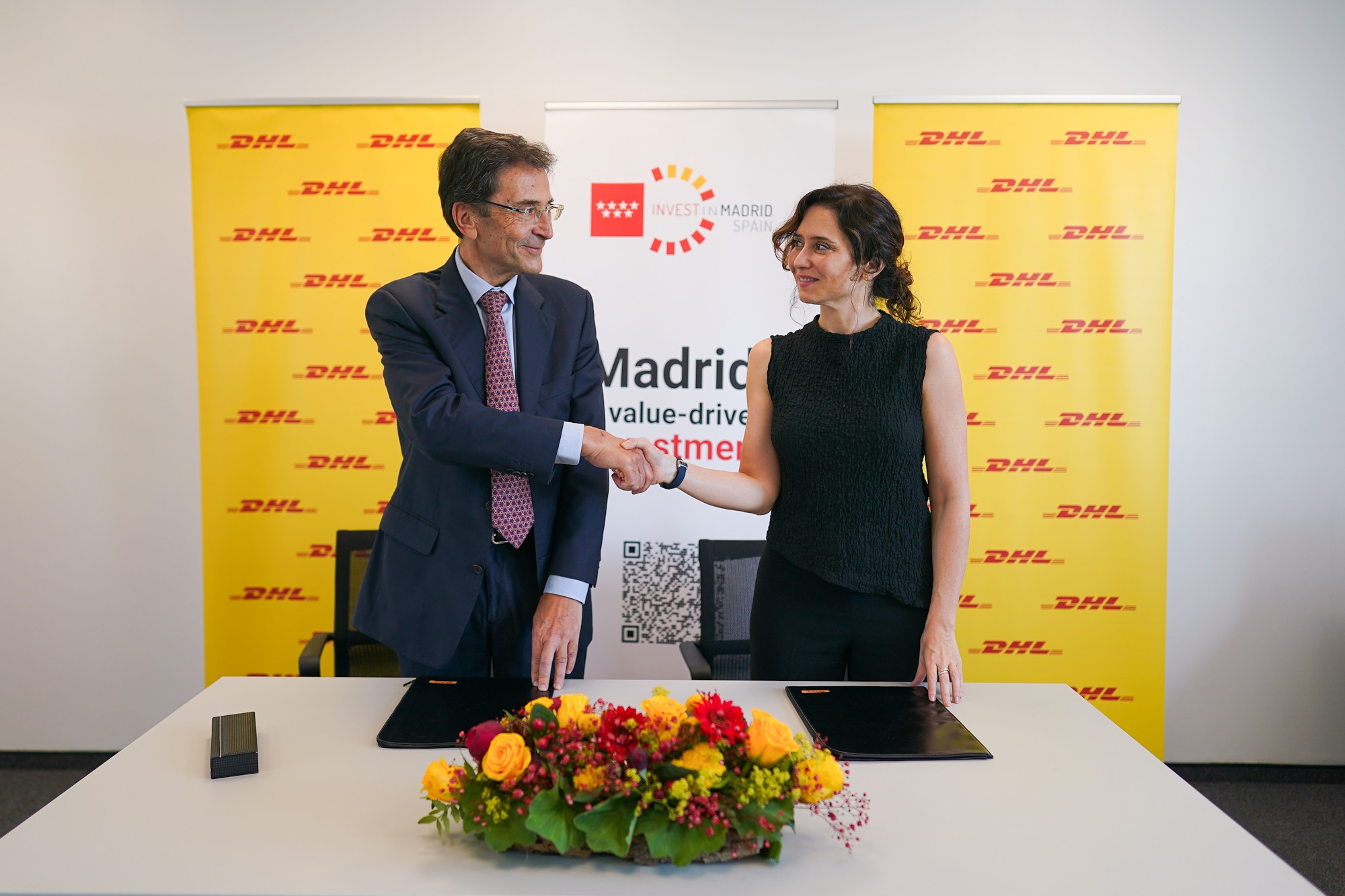 En la primera jornada de la visita institucional al país germano, Díaz Ayuso ha firmado también un acuerdo de cooperación con el director general de DHL Express España, Miguel Borrás, para promover el desarrollo económico y la capacitación profesional en la industria madrileña, en el que la logística y la distribución tienen un peso clave.