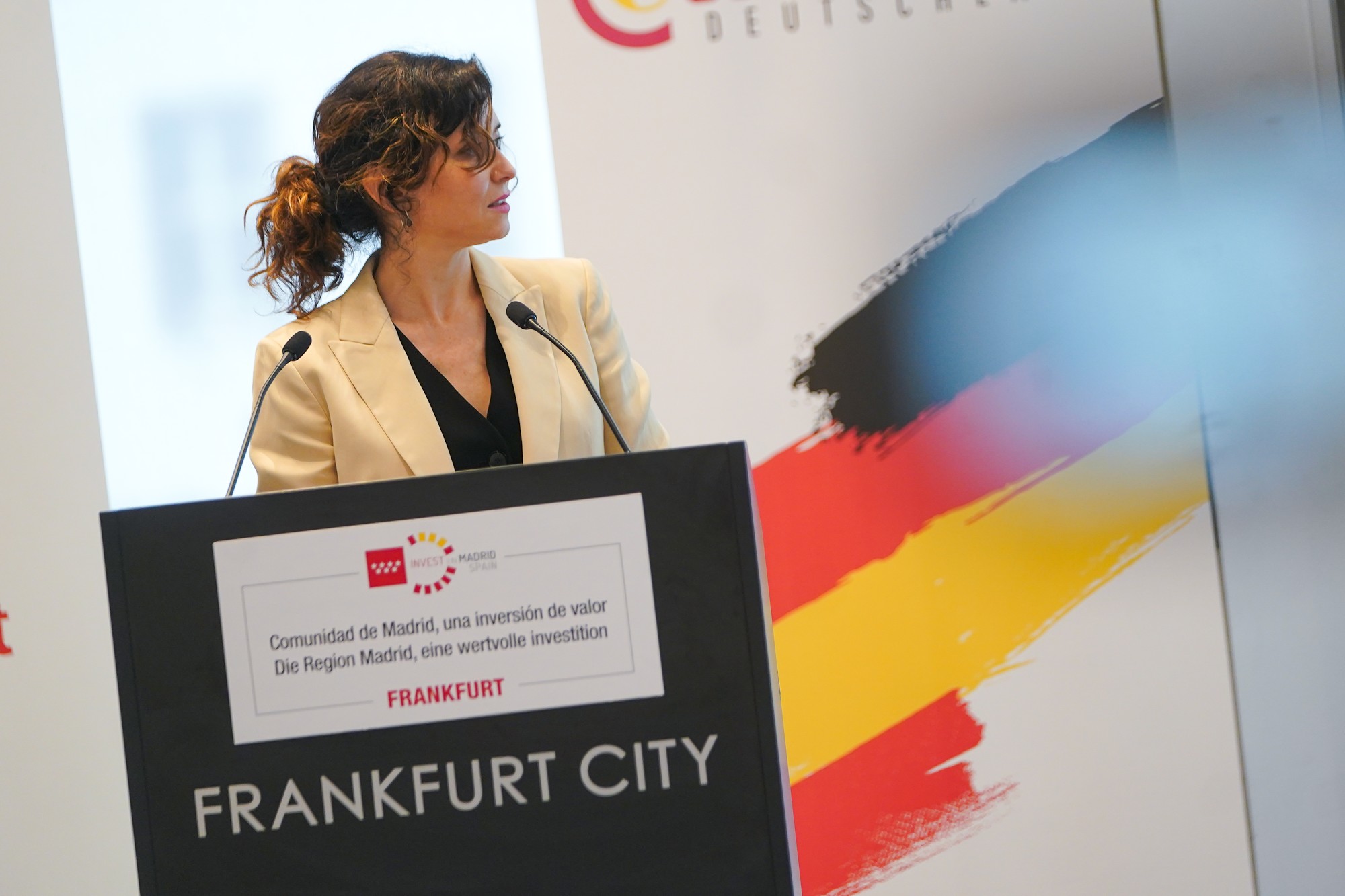 La presidenta se reunió también Frankfurt con empresarios españoles a los que pidió “confianza” para apoyar las “grandes apuestas de futuro” de la región, como Madrid Nuevo Norte, la próxima Ciudad de la Justicia, la Fórmula 1 o el proyecto de la Ciudad de la Salud con el Hospital Universitario La Paz y la Facultad de Medicina de la Universidad Autónoma de Madrid.