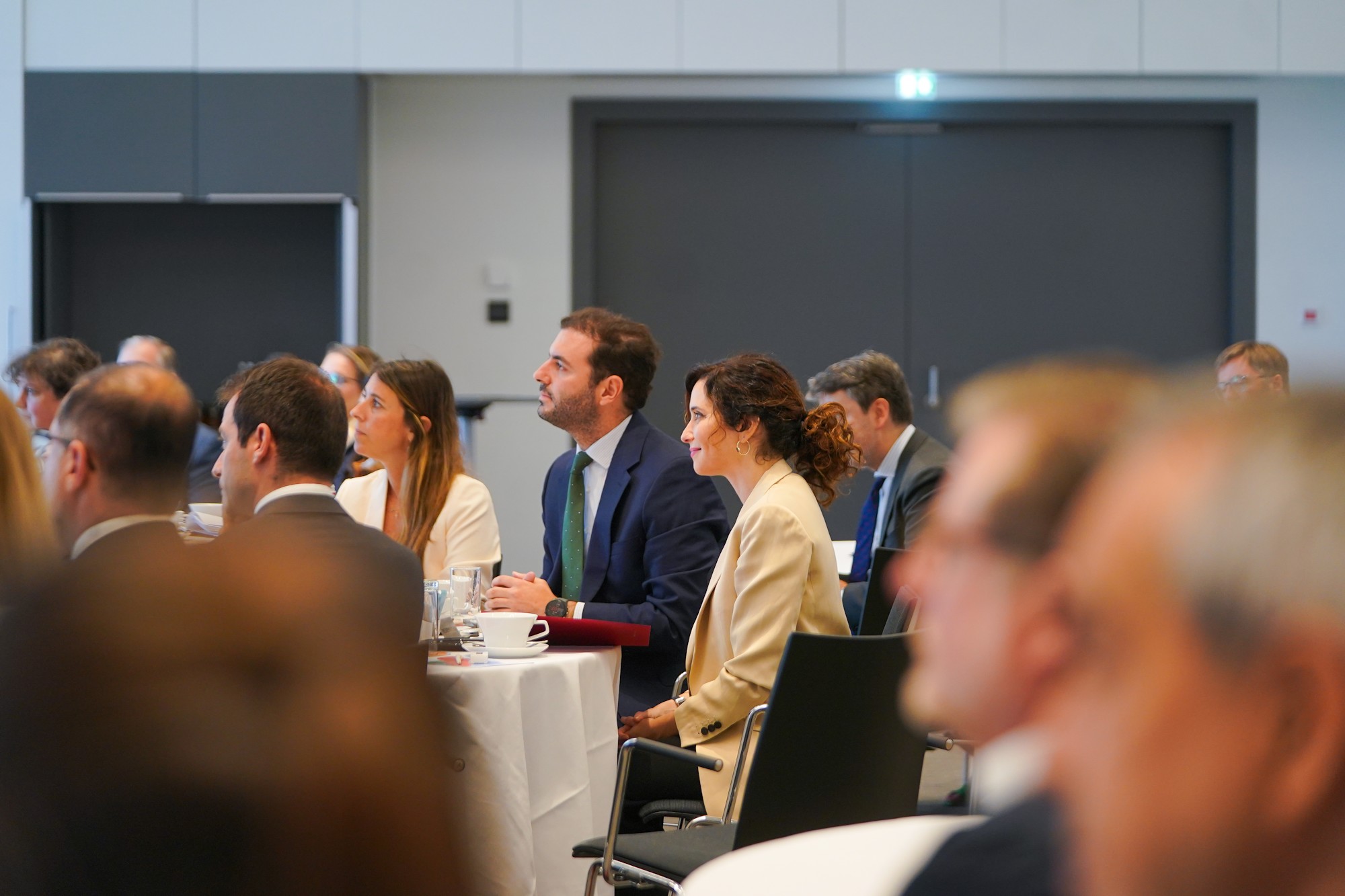 Tras su reunión en Siemens, la presidenta ha presentado a medio centenar de empresarios y directivos alemanes las políticas liberales basadas en bajos impuestos y menos trabas burocráticas del Gobierno regional
