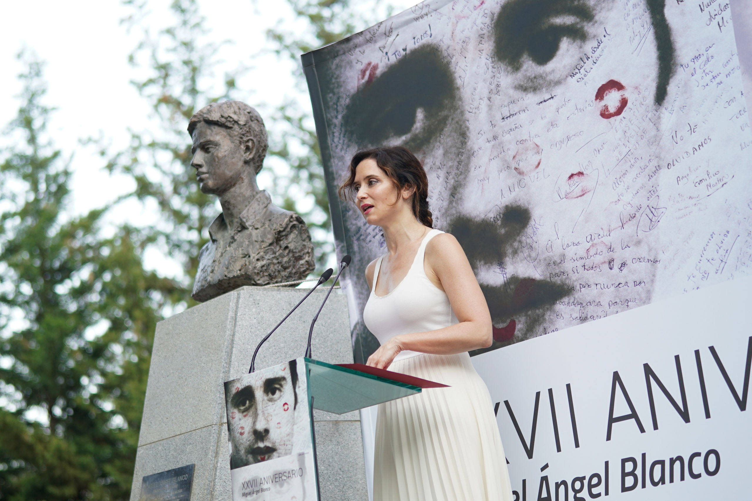 La presidenta de la Comunidad de Madrid ha participado este jueves en el 27 aniversario del asesinato por parte de ETA de Miguel Ángel Blanco.
