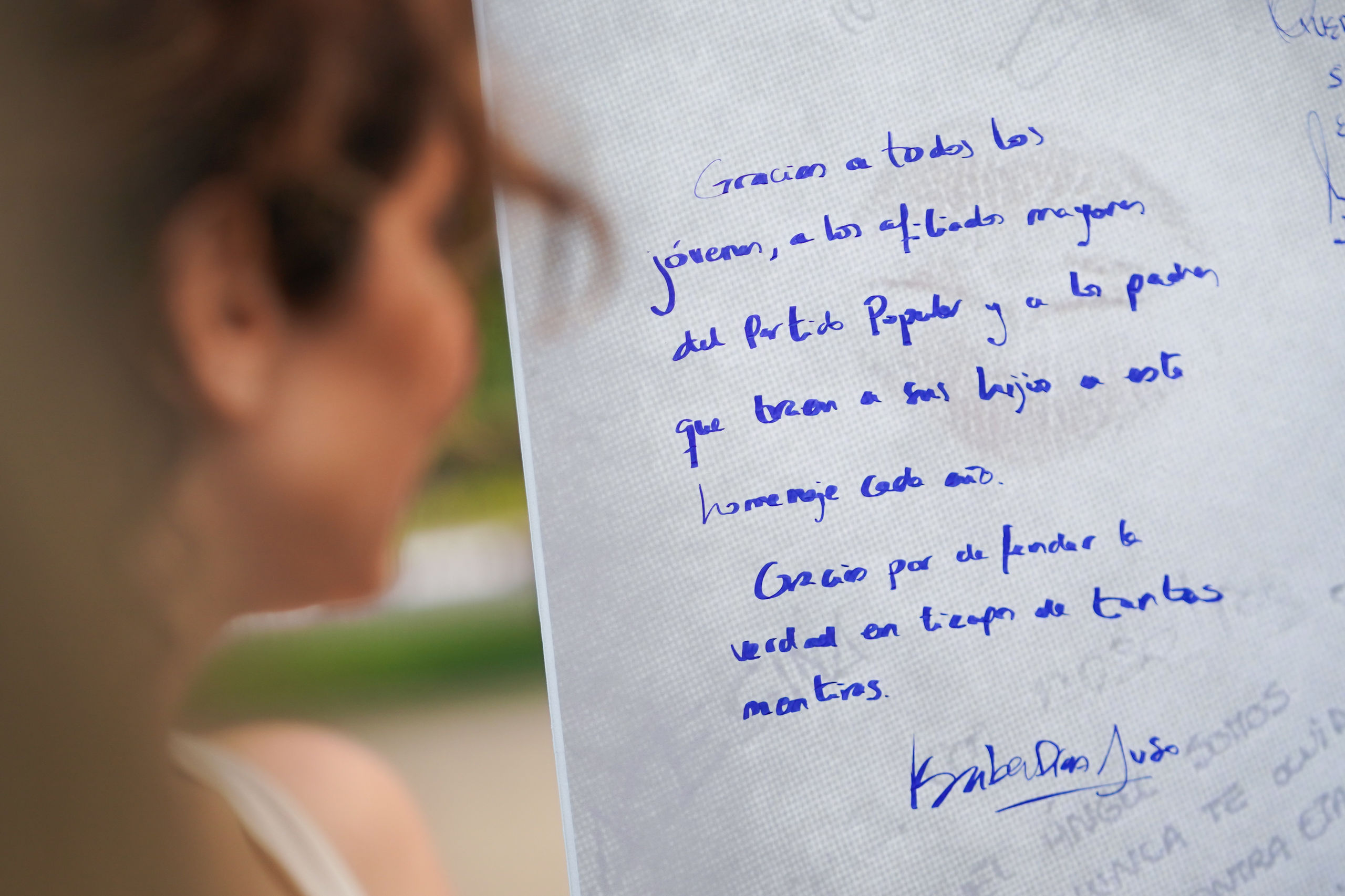 “ETA sigue viva y tiene más peligro que nunca y, por eso, considero que, quizás, no hemos estado a la altura del legado de Miguel Ángel”, ha continuado, para destacar que al edil “lo pusieron en el punto de mira por atreverse a ser digno” y que “fue un ejemplo de generosidad, coraje y alegría".