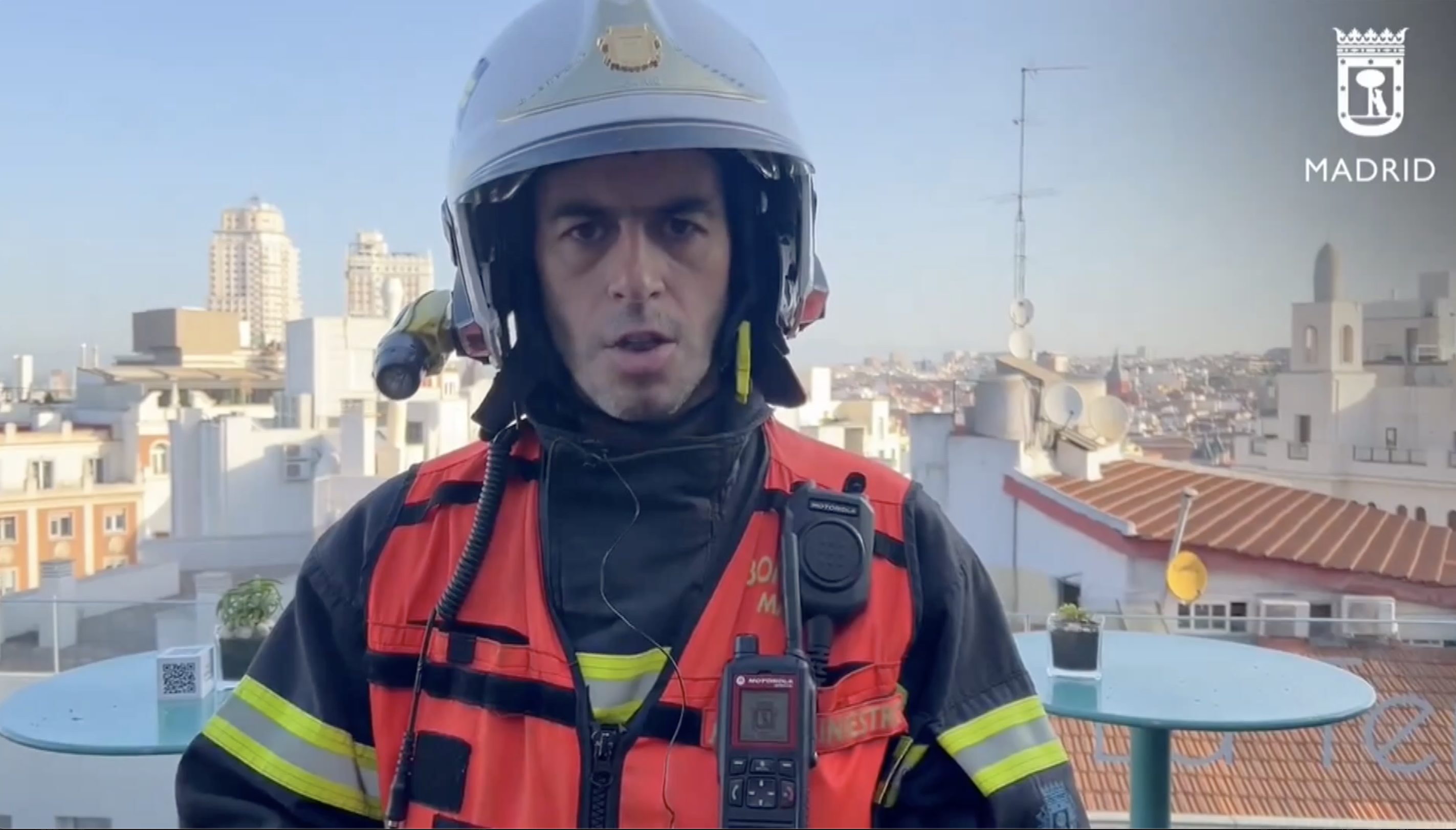 Nueve dotaciones de Bomberos del Ayuntamiento de Madrid controlaron y extinguieron rápidamente el fuego que al ser en la última planta y al aire libre no se ha propagado.