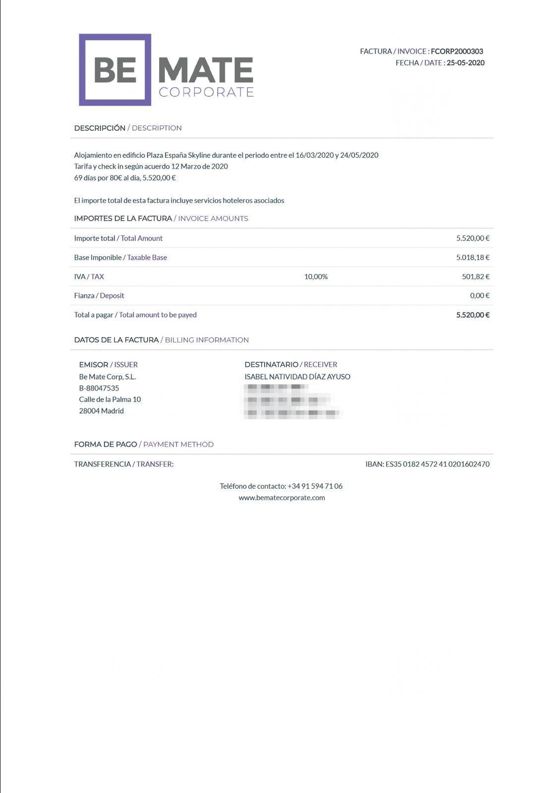 Ese sería pues el motivo de que la empresa informara al Congreso de que no existía factura a nombre de Ayuso. La compañía hotelera señala al respecto que "rogamos que se deje de crear confusión a base de publicar información incompleta o incorrecta. Be Mate Apartments podrá confirmar la existencia de facturas correspondientes a la estancia de la presidenta de la Comunidad de Madrid. No nos consta si Be Mate Apartments ha recibido un requerimiento para proporcionar esta información." Concluyen precisando que "como empresa privada, cumpliendo con la legalidad, no nos corresponde hacer público ningún dato privado de cualquiera de nuestros clientes".