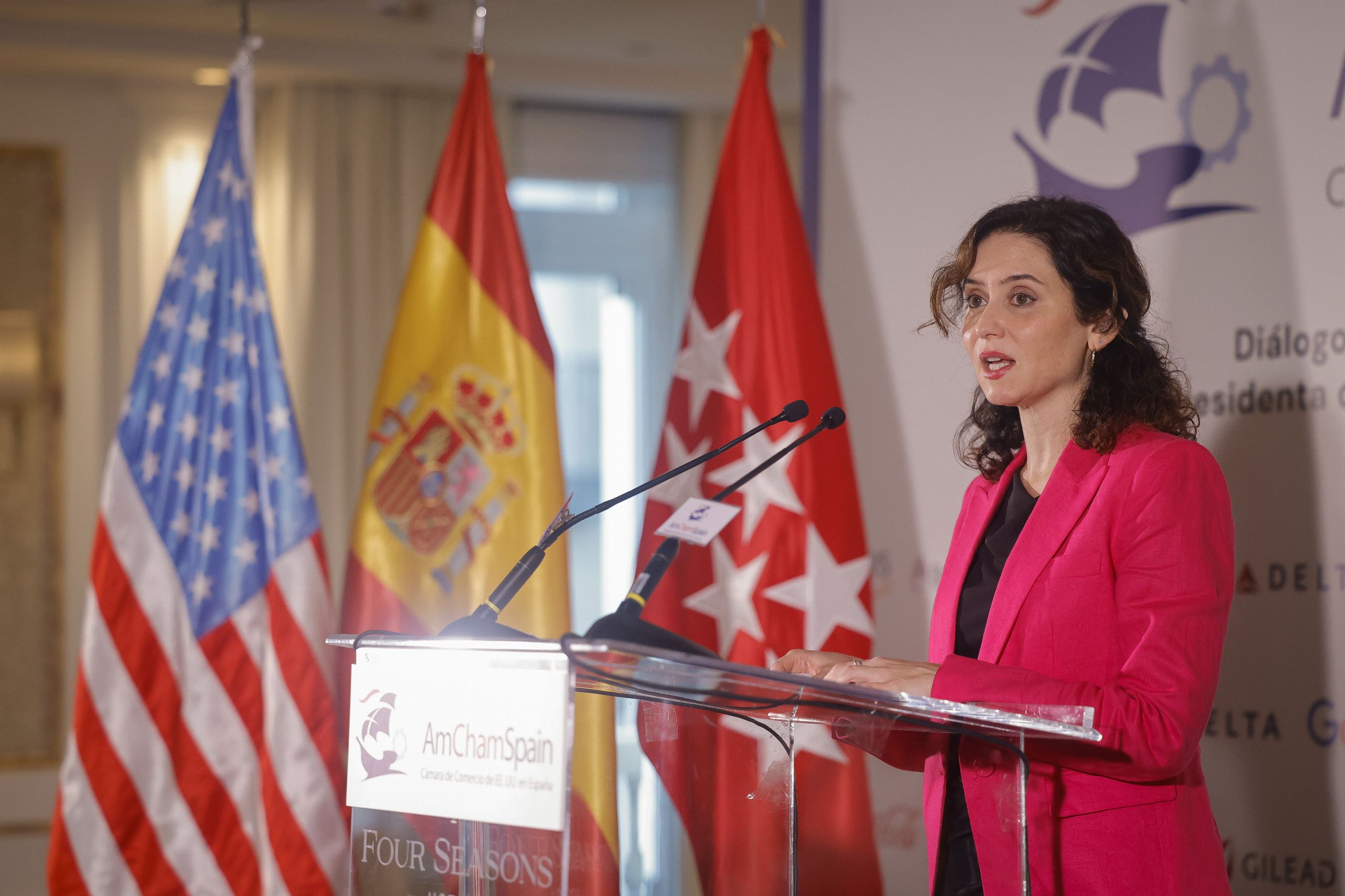 En un desayuno empresarial con representantes de la Cámara de Comercio de Estados Unidos en España, la presidenta madrileña señaló que el acuerdo alcanzado entre el Gobierno de Pedro Sánchez y EH Bildu, que pasó inadvertido en julio para los partidos de la oposición, según reveló este lunes El Confidencial, evidencia de forma definitiva lo que ella viene denunciando desde hace tiempo. Esto es que el Ejecutivo y sus socios de Sumar colaboran "diariamente con el entorno de ETA" y España queda "completamente indefensa".
