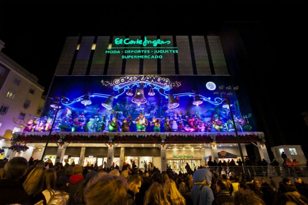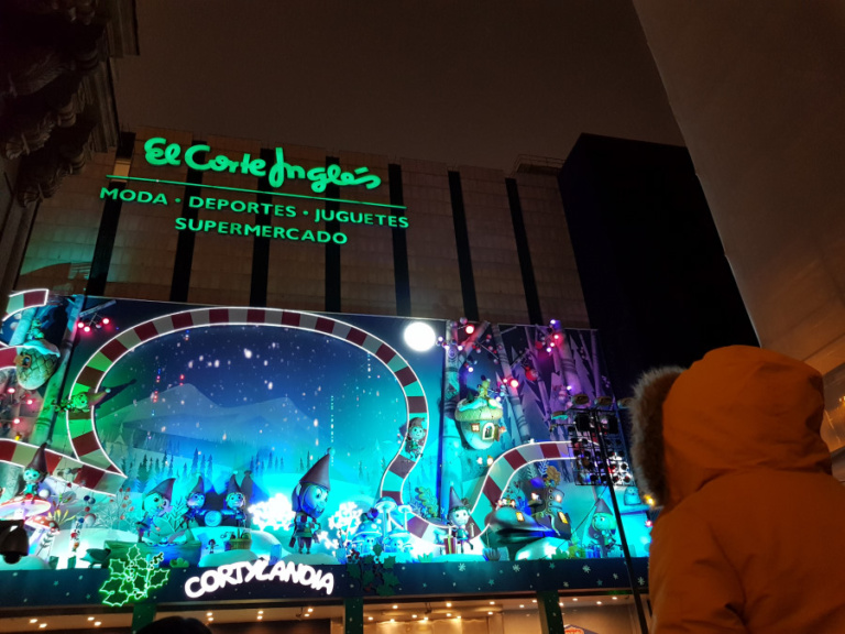 Un año antes de la pandemia, la fachada de El Corte Inglés se transformaba en un entorno mágico lleno de pequeños elfos.
