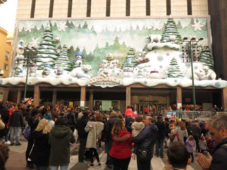 En 2017, la fachada de la calle Preciados ofrecía una estampa invernal que realzaba la época navideña de la ciudad de Madrid.