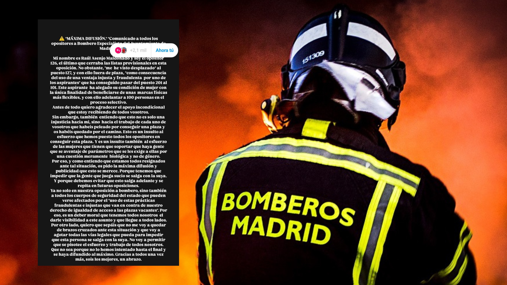 Como consecuencia, David a pasó del puesto 201 al 101 y desplazó a Raúl al puesto 127, quedando así fuera de la lista definitiva de admitidos: "Me han dejado fuera porque se me ha colado el número 101". "Este aspirante ha alegado su condición de mujer con la única finalidad de beneficiarse de unas marcas físicas más flexibles, y con ello adelantar a 100 personas en el proceso selectivo", explica en su comunicado.