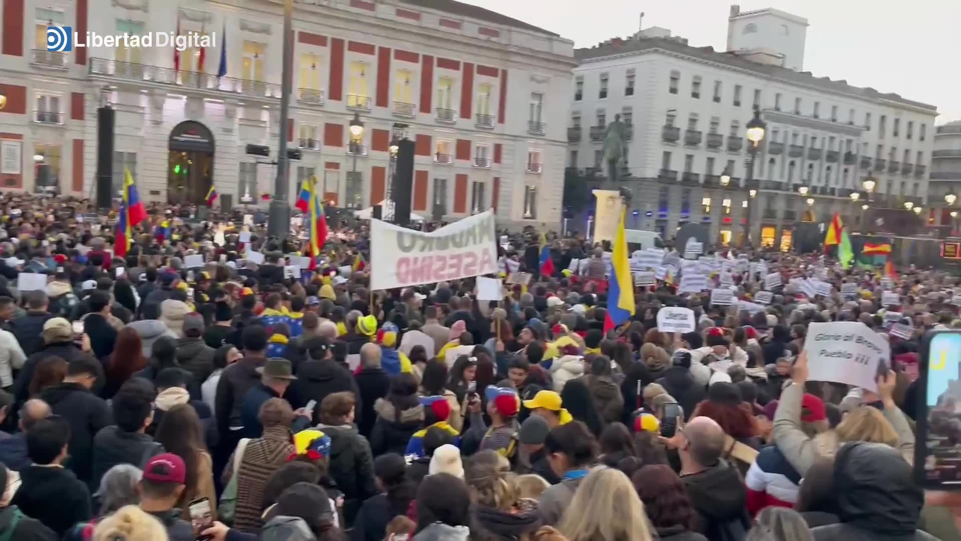Miles de personas se dan cita en la madrileña Puerta del Sol para participar en la concentración convocada por la oposición venezolana para reivindicar la victoria de Edmundo González Urrutia en las presidenciales del 28 de julio y en contra de un nuevo mandato de Nicolás Maduro.