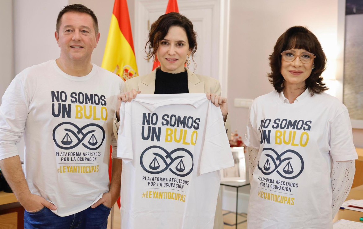 En cualquier caso, "hay una disposición clara" del Gobierno de Ayuso a "proteger y apoyar a las víctimas de la ocupación e inquiocupación, especialmente a "los que nos convertimos en vulnerables por los efectos que se derivan de la aplicación de la legislación, que protege más a los ocupas que a nosotros", aseguran.
