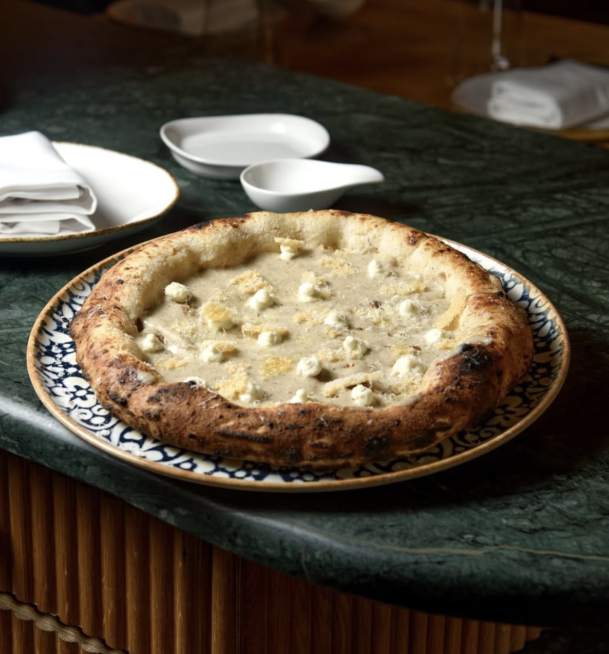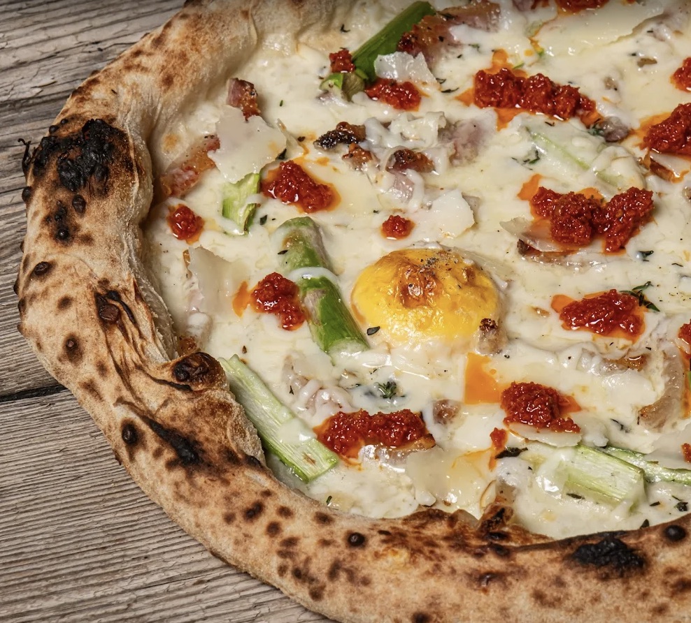 La pizza Cacio e Pepe rinde homenaje a la receta tradicional romana, transformando un plato icónico de la cocina italiana en una experiencia única.