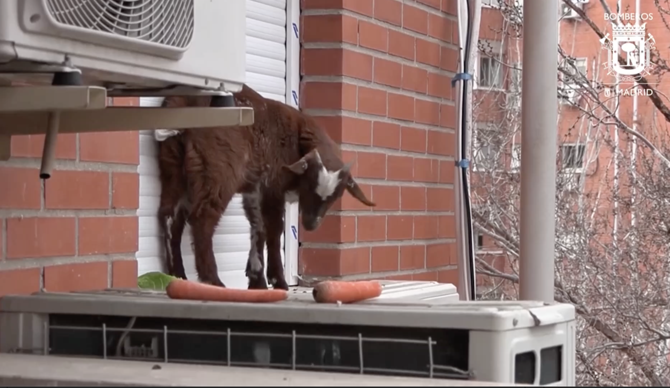 Así fue el rescate de una cabra atrapada en la ventana de un quinto piso en Madrid