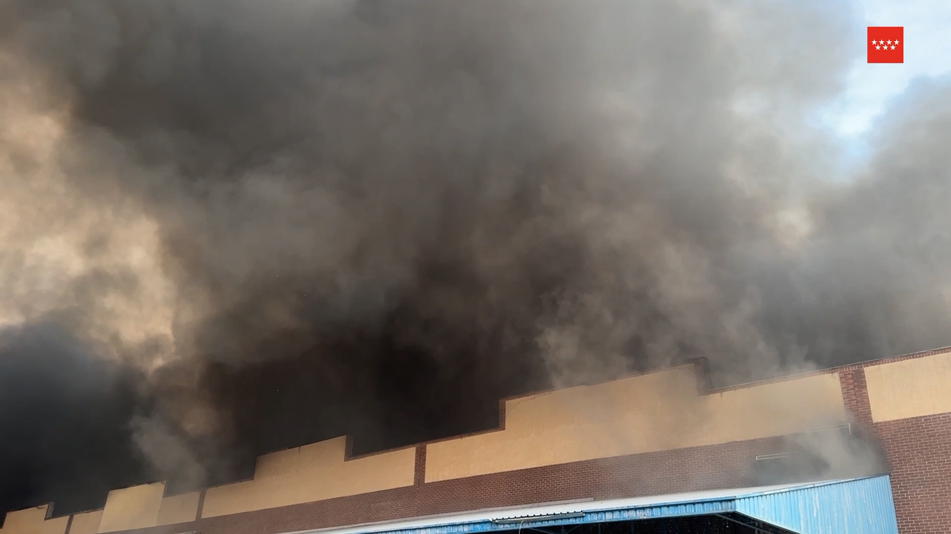Fuenlabrada, 28 de febrero de 2025. Un gran incendio se ha desatado esta mañana en una extensa nave del polígono industrial de Cobo Calleja, en el municipio de Fuenlabrada, generando una importante movilización de efectivos de bomberos de la Comunidad de Madrid y del Ayuntamiento de Fuenlabrada.