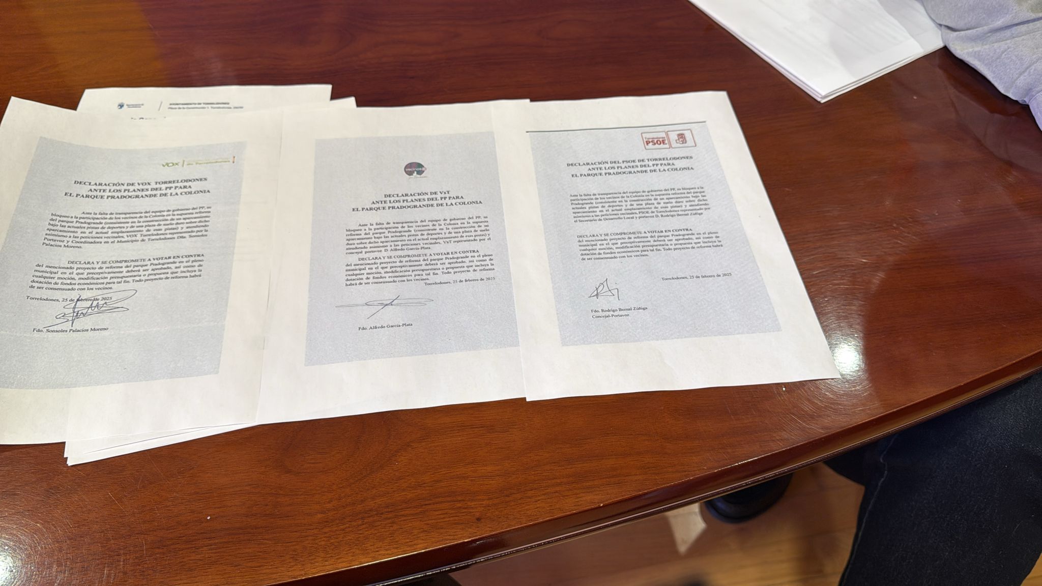 Y es que el martes pasado, Vox participó en un acto conjunto con Vecinos por Torrelodones y PSOE. Pese a formar parte del equipo de gobierno con el PP, la portavoz de la formación, Sonsoles Palacios, unió su firma a la de los dos grupos de la izquierda para comprometerse a votar en contra de un proyecto que el Ayuntamiento afirma que no existe: un aparcamiento en Pradogrande. A la reunión también asistieron miembros de Izquierda Unida y de Más Madrid.
