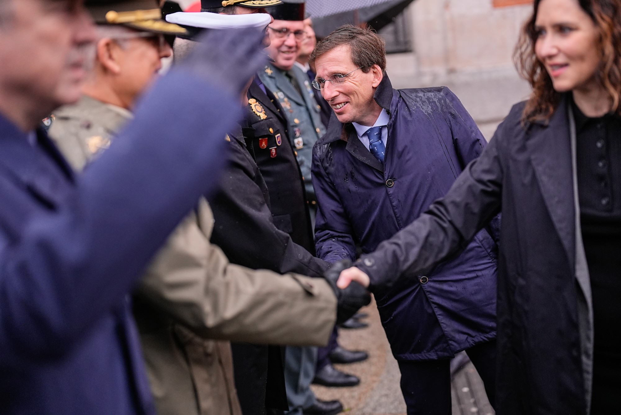 En el acto institucional en la Puerta del Sol han acudido los portavoces de los grupos parlamentarios en la Asamblea de Madrid y del Ayuntamiento de Madrid, además del delegado del Gobierno, Francisco Martín, a quien no se le había cursado una invitación formal pero ha decidido acudir motu proprio, según ha indicado a los periodistas posteriormente.