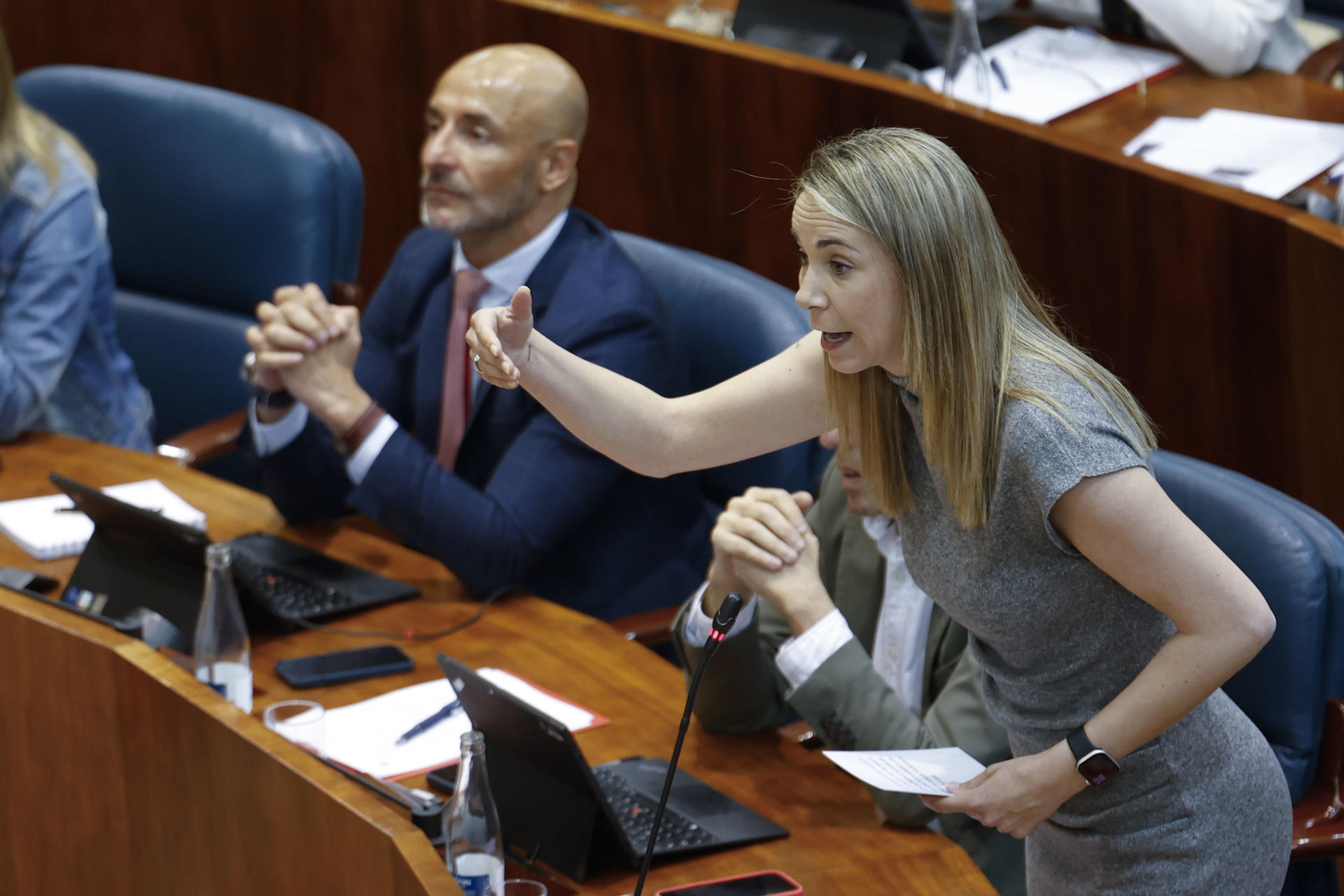 "Señor presidente, páreme el tiempo porque así no se puede intervenir", instó la socialista. Petición que fue escuchada: 20 segundos más para ella. Pero fue entonces su portavoz adjunto, Fernando Fernández Lara, llevado por la ofuscación y el enfado el que la interrumpió dos veces más. "No valéis para nada", se le pudo escuchar decir a los populares. Espinar lo volvió a intentar. "Mala educación", añadió entonces su compañero de bancada. La portavoz se giró molesta hacia él mientras otro diputado se lo reprochaba: "Fernando, macho".