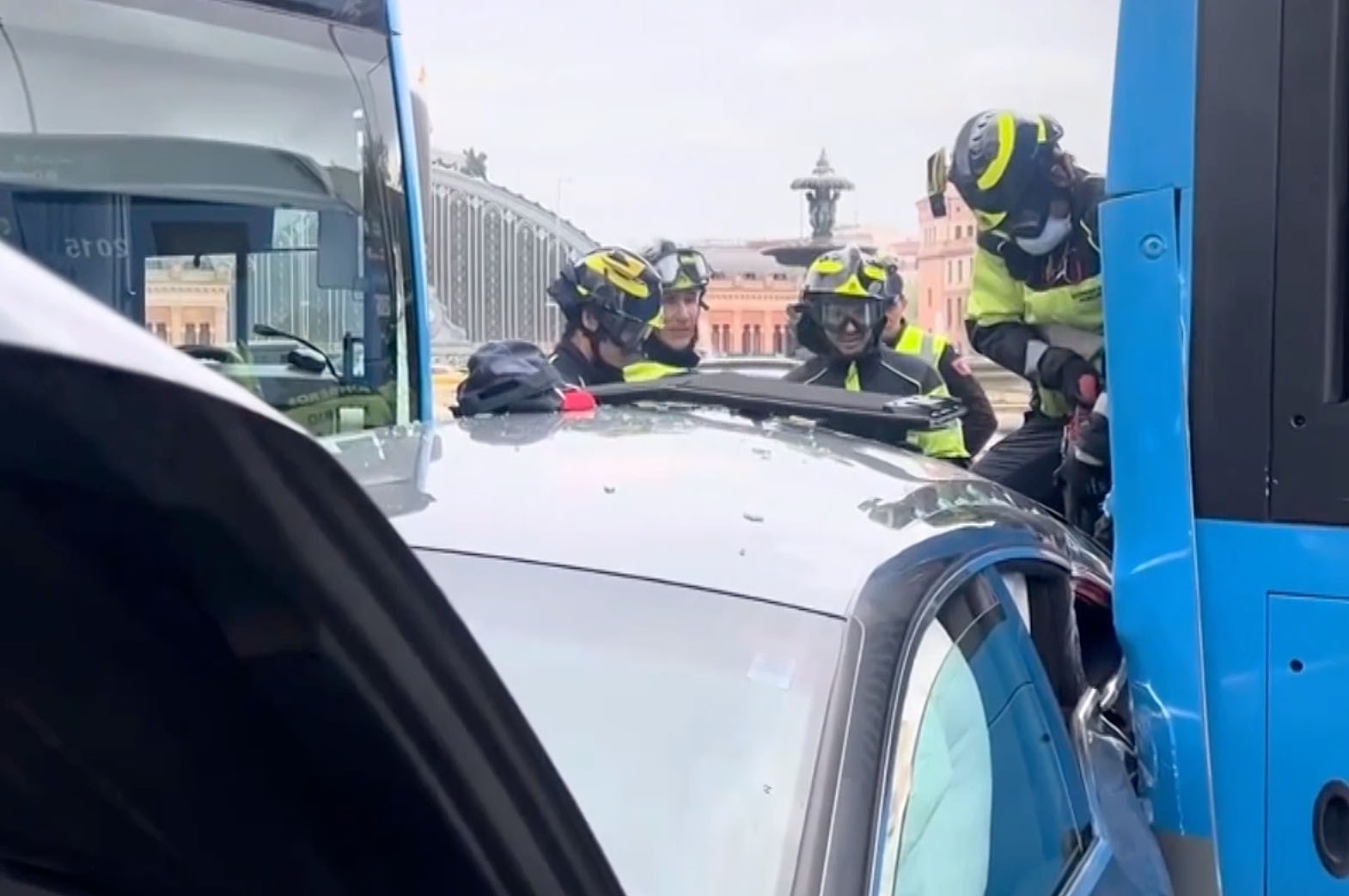 Un conductor de la Empresa Municipal de Transportes de Madrid ha sufrido un síncope este sábado mientras conducía un autobús, lo que ha provocado un aparatoso accidente en el que se se han visto involucrados otro autobús y cinco coches particulares.