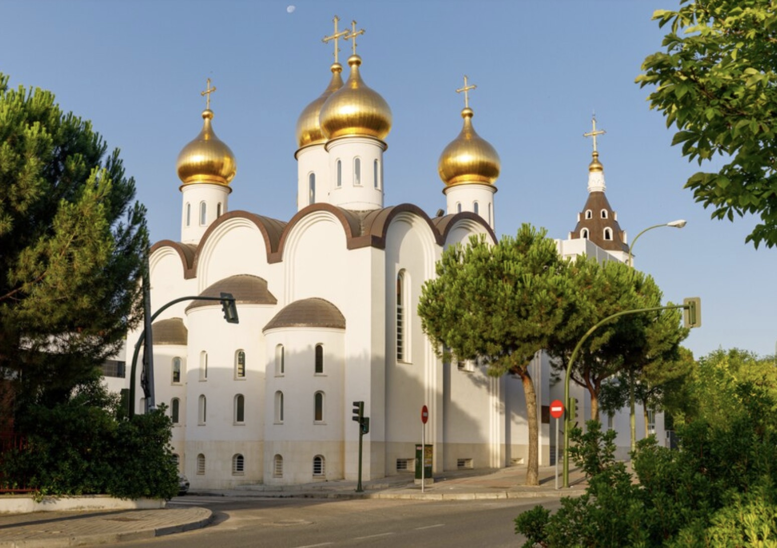 La Catedral Ortodoxa de Santa María Magdalena destaca por sus impresionantes cúpulas doradas que brillan sobre el barrio de Hortaleza. Diseñada por el arquitecto ruso Alexei Vorontsov y el español Jesús San Vicente, el templo fue construido en estilo neobizantino.
