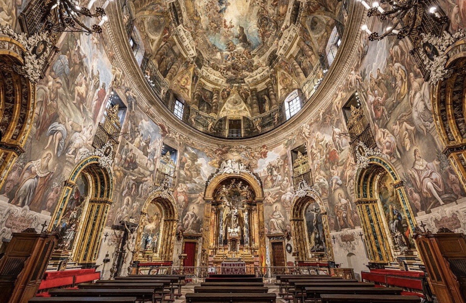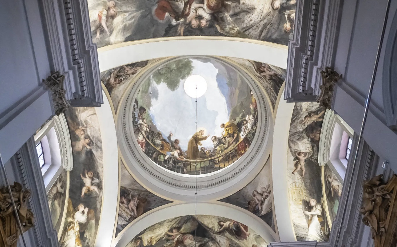 La Iglesia de San Antonio de los Alemanes es conocida en Madrid como la "Capilla Sixtina" de la ciudad. Puede parecer una afirmación exagerada, sobre todo al ver su discreta fachada de ladrillo rojo, sencilla y sin ornamentos llamativos que anticipen lo que guarda en su interior. Sin embargo, basta cruzar su puerta para descubrir una joya del siglo XVII: un impresionante conjunto de frescos que cubren por completo su interior, ofreciendo un verdadero espectáculo artístico. Todo esto, en pleno corazón del barrio de Malasaña.