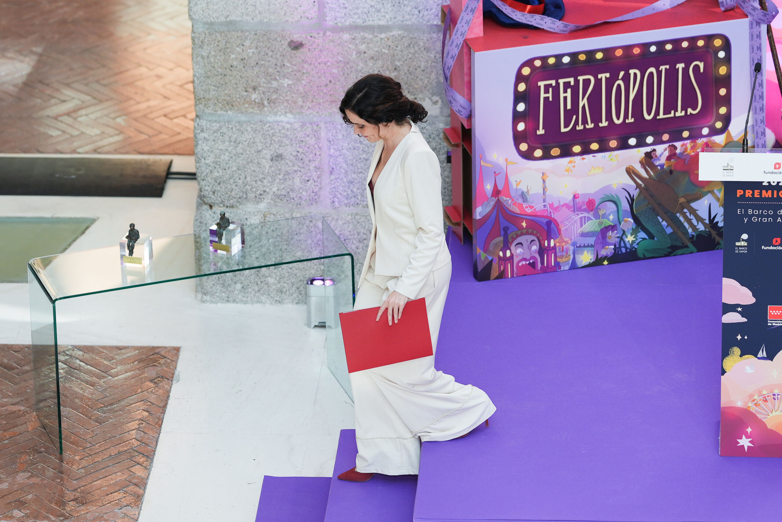La presidenta madrileña ha acompañado a la reina Letizia, quien ha presidido la 47ª edición de los Premios El Barco de Vapor y Gran Angular, que reconocen cada año las mejores obras de literatura infantil y juvenil.