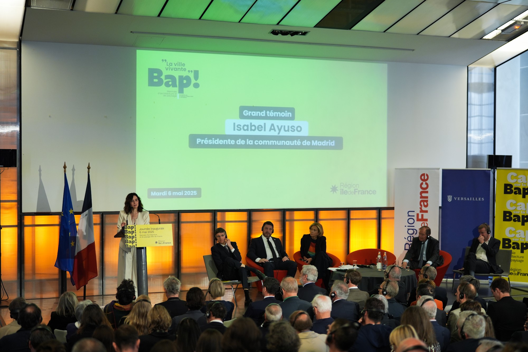 La presidenta madrileña participó este martes en Versalles (Francia) en la inauguración de la Biennale de Arquitectura y Paisajismo 2025.