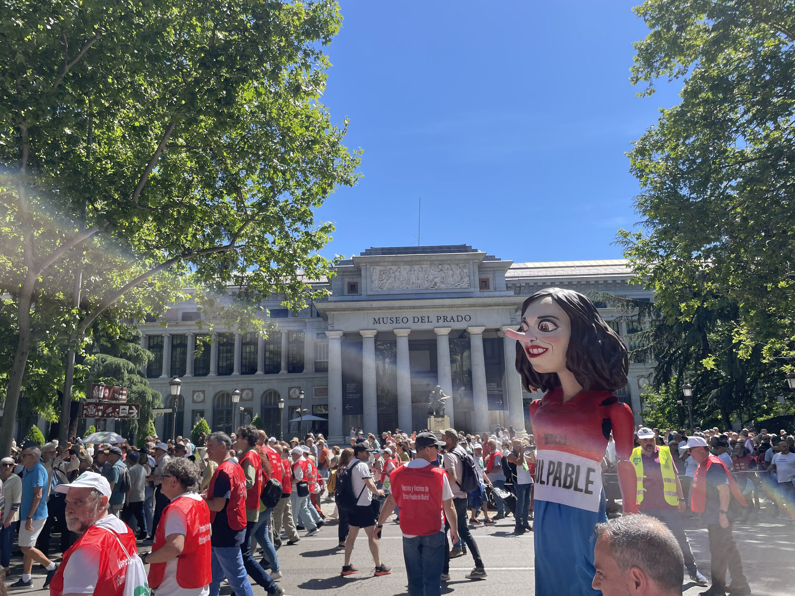 La columna sur de la manifestación ha pasado junto al Museo del Prado, donde se ha cantado contra la líder del PP de Madrid juzgándola como “culpable" por su gestión de la Sanidad Pública.