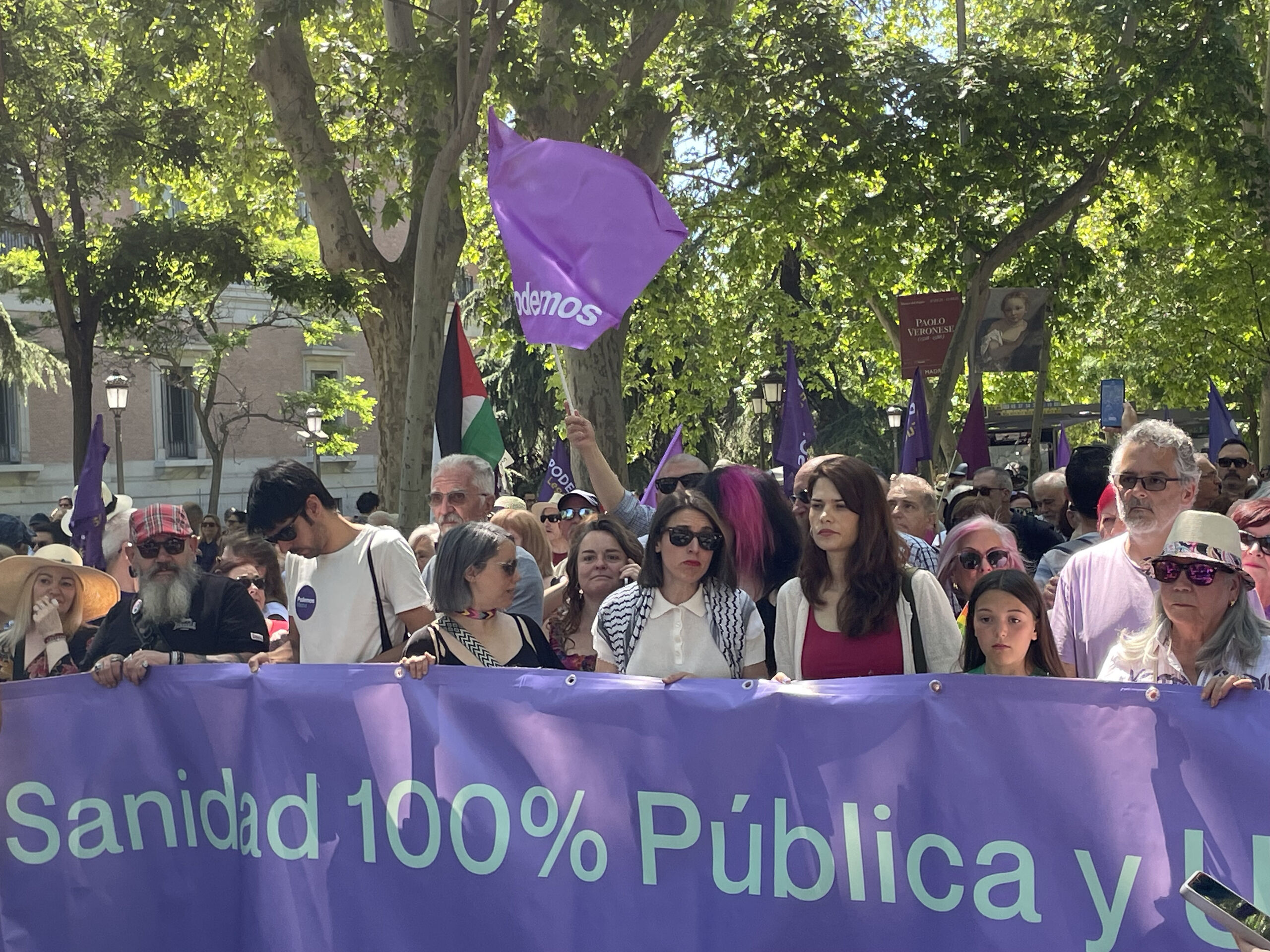 Las eurodiputadas de Podemos Irene Montero e Isa Serra se manifiestan a favor de la Sanidad Pública.