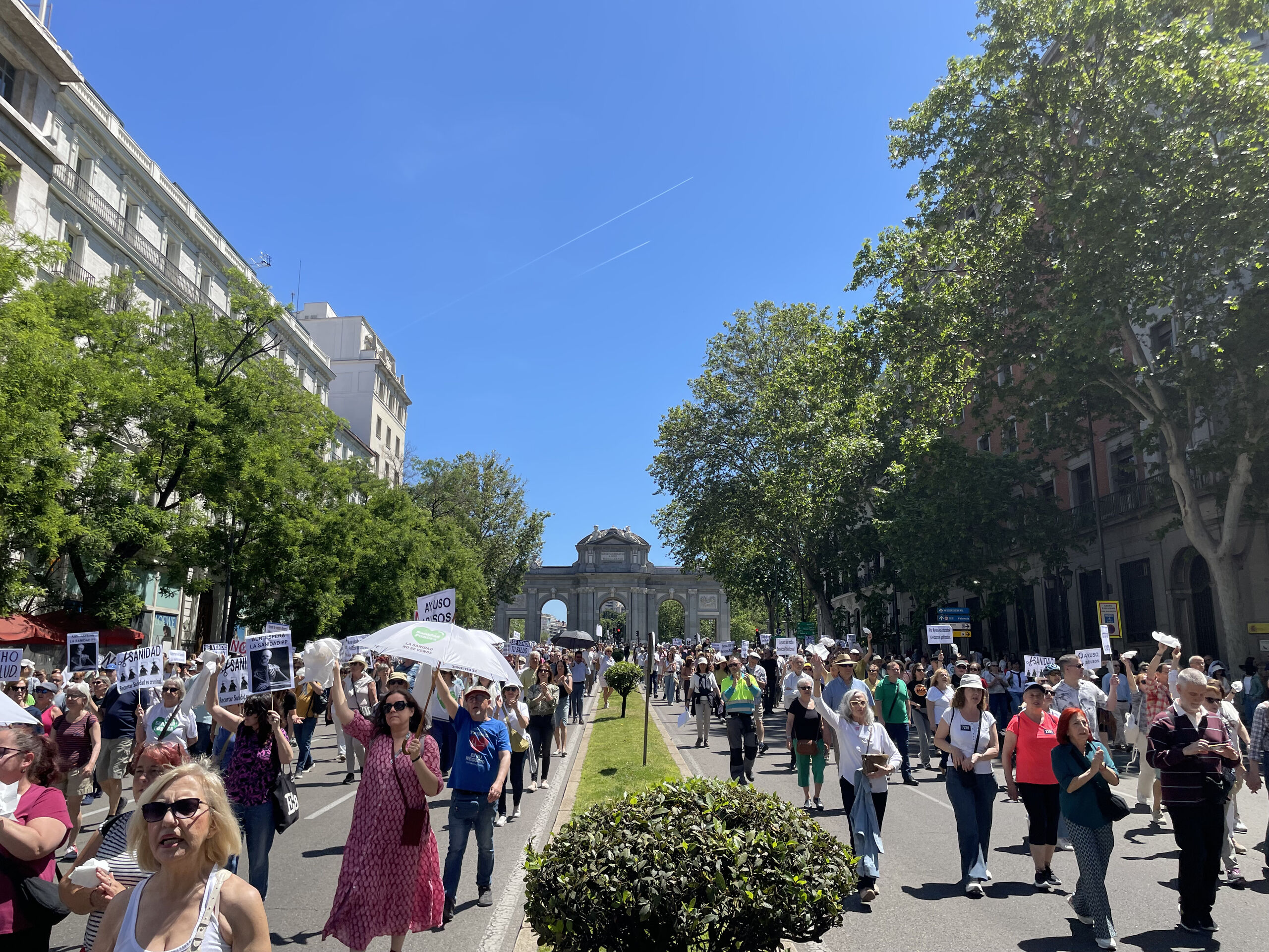 La vertiente norte de la manifestación llega a Plaza de Cibeles tras haber salido de la Plaza Doctor Marañón.