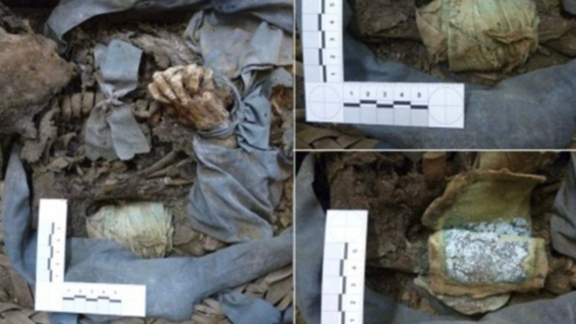El féretro, localizado en el Barrio de las Letras, contenía el cuerpo semi momificado de la menor, vestido con una capa azul y lazos del mismo color. Junto a ella se hallaron una hoja de hiedra y una rama de palma trenzada. El vendaje incluía capas de gasa, una placa metálica de cobre y zinc, y una hoja fértil de Hedera en contacto con la piel.