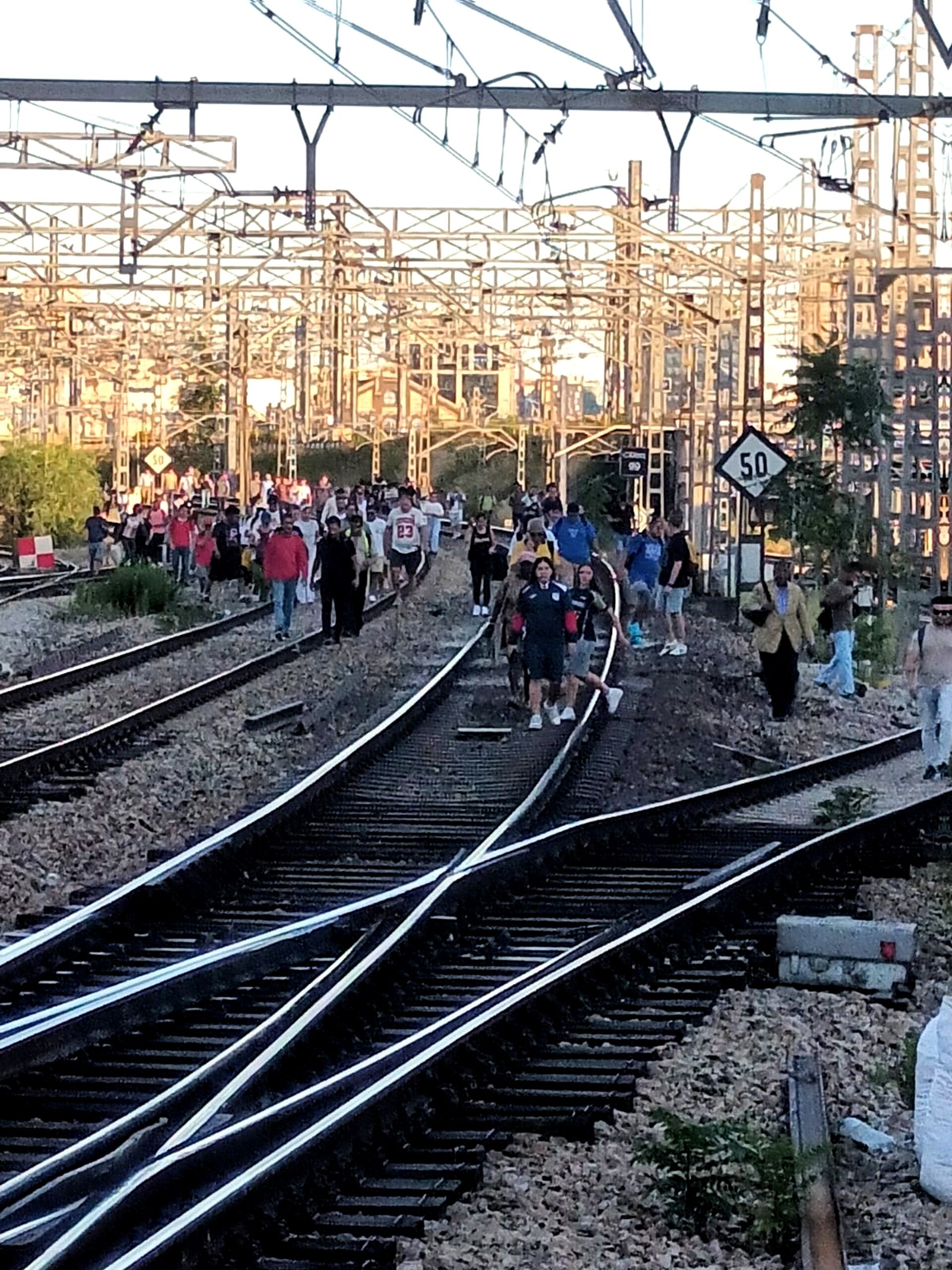 Pasajeros de Cercanías han ocupado este miércoles las vías en las proximidades de la estación de Atocha tras registrarse una avería en el fluido eléctrico que afecta a las líneas C-2, C-7, C-8 y C-10.