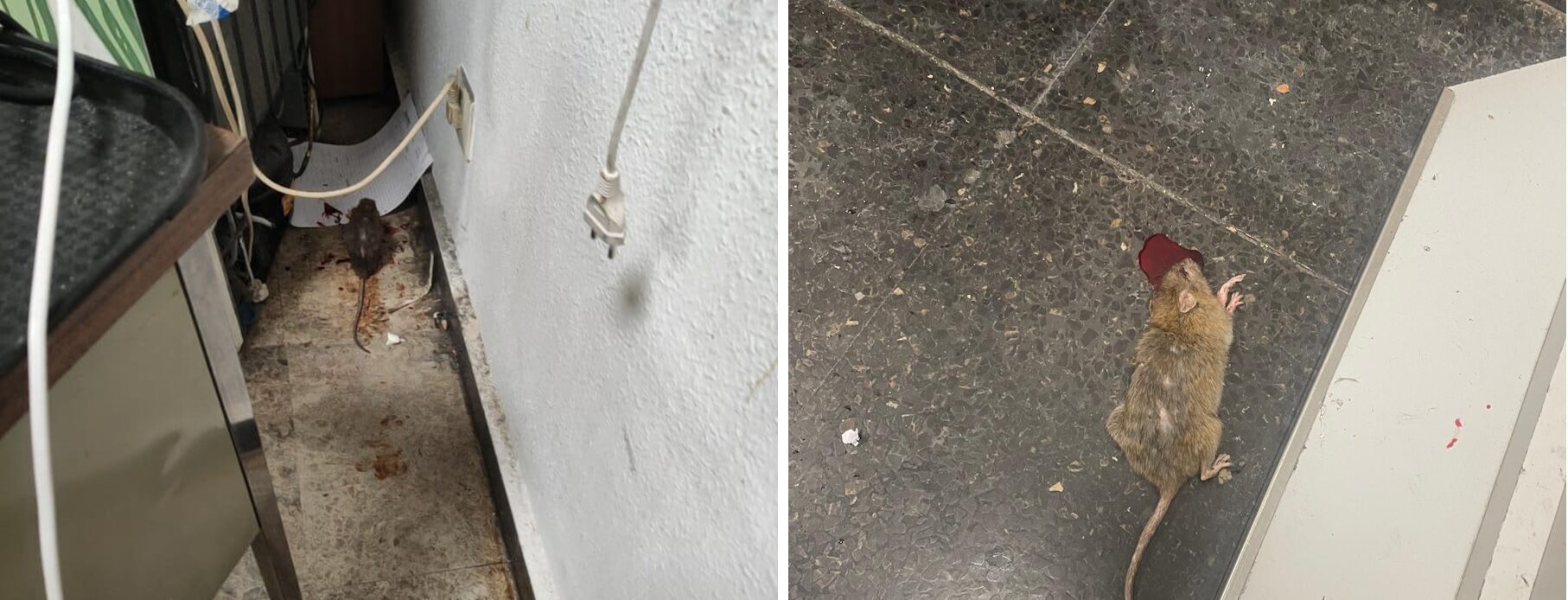 La denuncia ha venido acompañada de la difusión de una serie de imágenes en las que se puede ver roedores corriendo a sus anchas, así como restos de animales muertos en oficinas de la Guardia Civil. Han asegurado que la situación es tan grave que, casi un mes después de retirarlos, aún permanecen manchas de sangre en sillas y paredes, ofreciendo una imagen de abandono en el principal aeropuerto español.