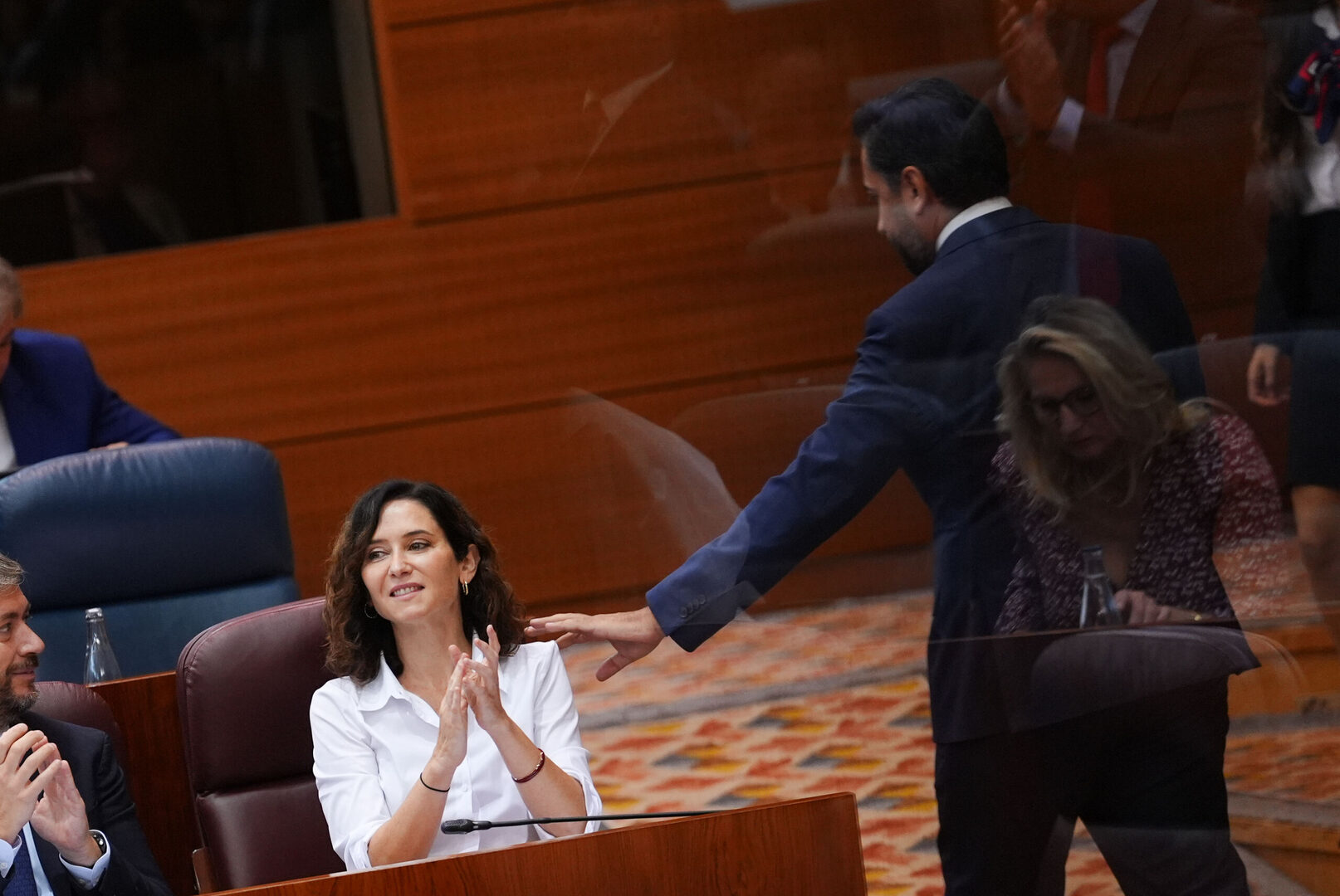 Después llegó la portavoz del PSOE, que adelantó por la izquierda a Bergerot. Espinar centró buena parte de su intervención – preparada conjuntamente con el ministro y líder de los socialistas madrileños, Óscar López- en Alberto González Amador, pareja de la presidenta. "No fue una inspección salvaje ni una operación de Estado; lo que fue es una trama orquestada por su pareja con la intención de delinquir", espetó la socialista, que volvió a vincular los contratos que la Comunidad de Madrid tiene con el grupo Quirón con el hecho de que González Amador – que trabaja desde hace años para este grupo sanitario- sea novio de Ayuso. "Dimita", le exigió a la jefa del Ejecutivo regional. "Dimita porque mintió y dimita porque no tiene corazón". En este punto, Espinar elevó el tono y las acusaciones e insultos a la presidenta se multiplicaron tanto en su primera intervención como después en la réplica.