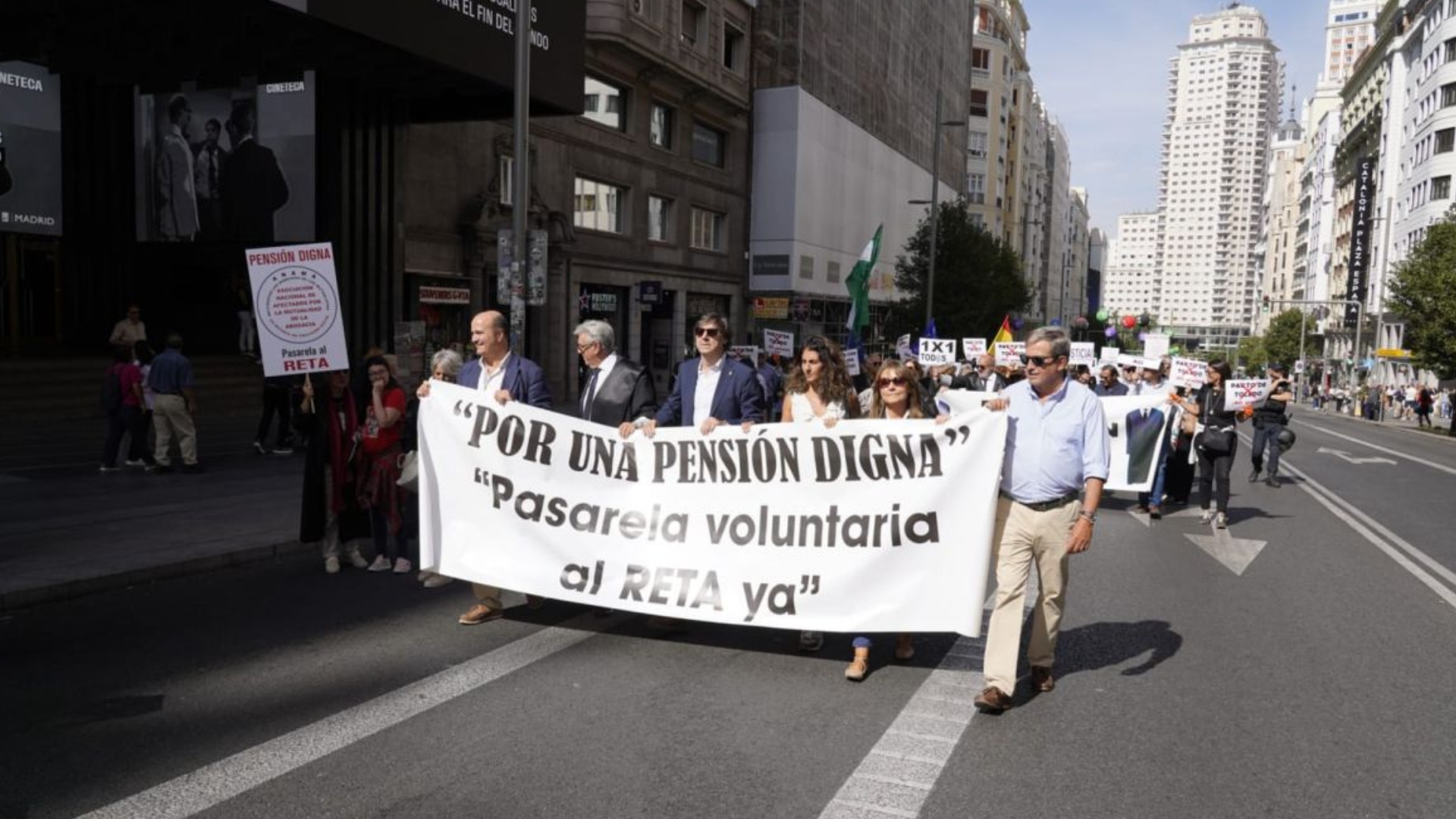 Miles de abogados y procuradores se manifestaron este sábado por el centro de Madrid reivindicando la llamada "pasarela al RETA" (Régimen Especial de Trabajadores Autónomos). Estos colectivos fueron los convocantes y, nuevamente, lograron una muy escasa participación de otros profesionales como médicos, ingenieros, arquitectos o gestores administrativos.