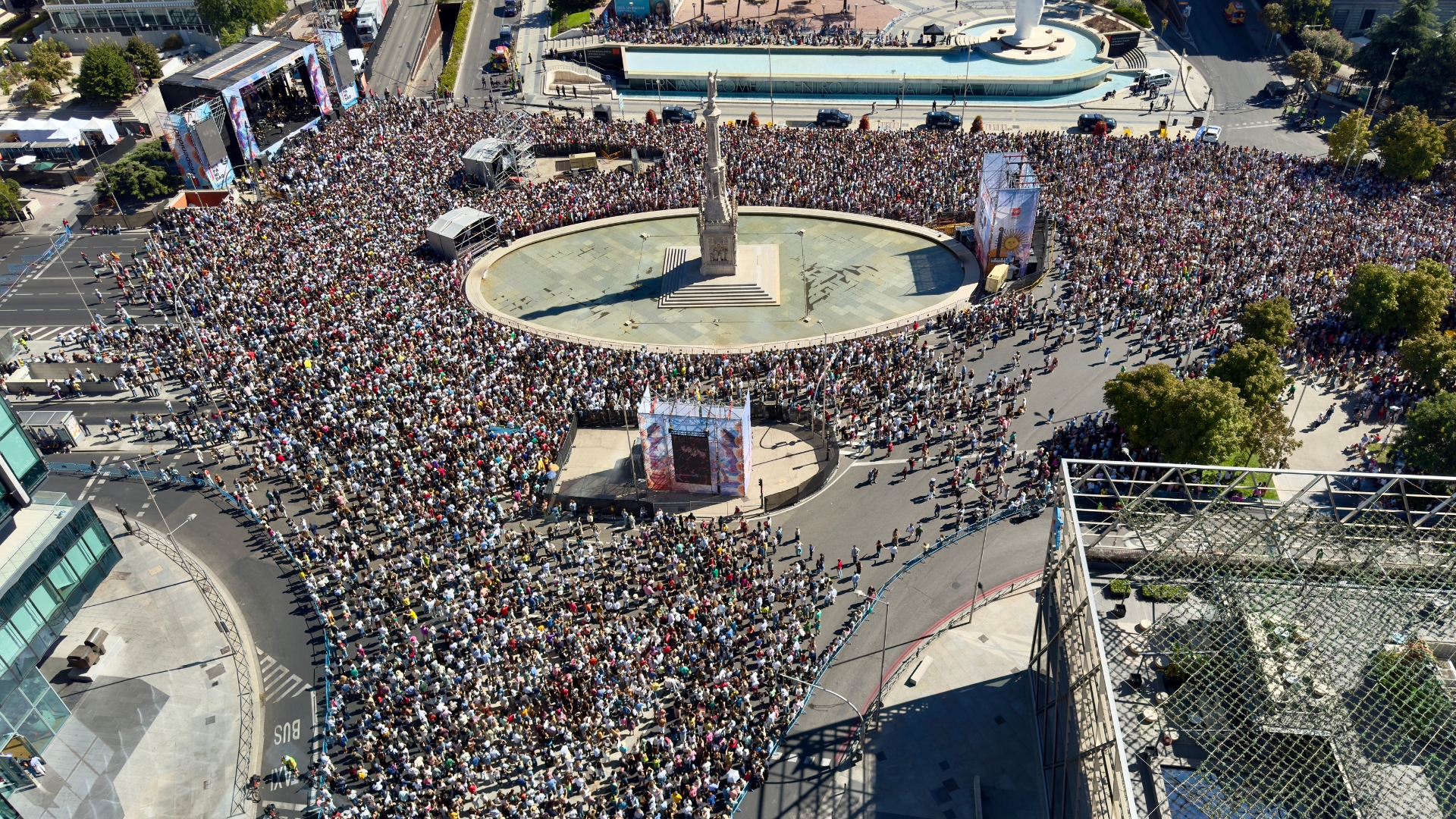 En la imagen aérea de la Plaza de Colón se puede ver la cantidad de público que ha asistido al concierto.
