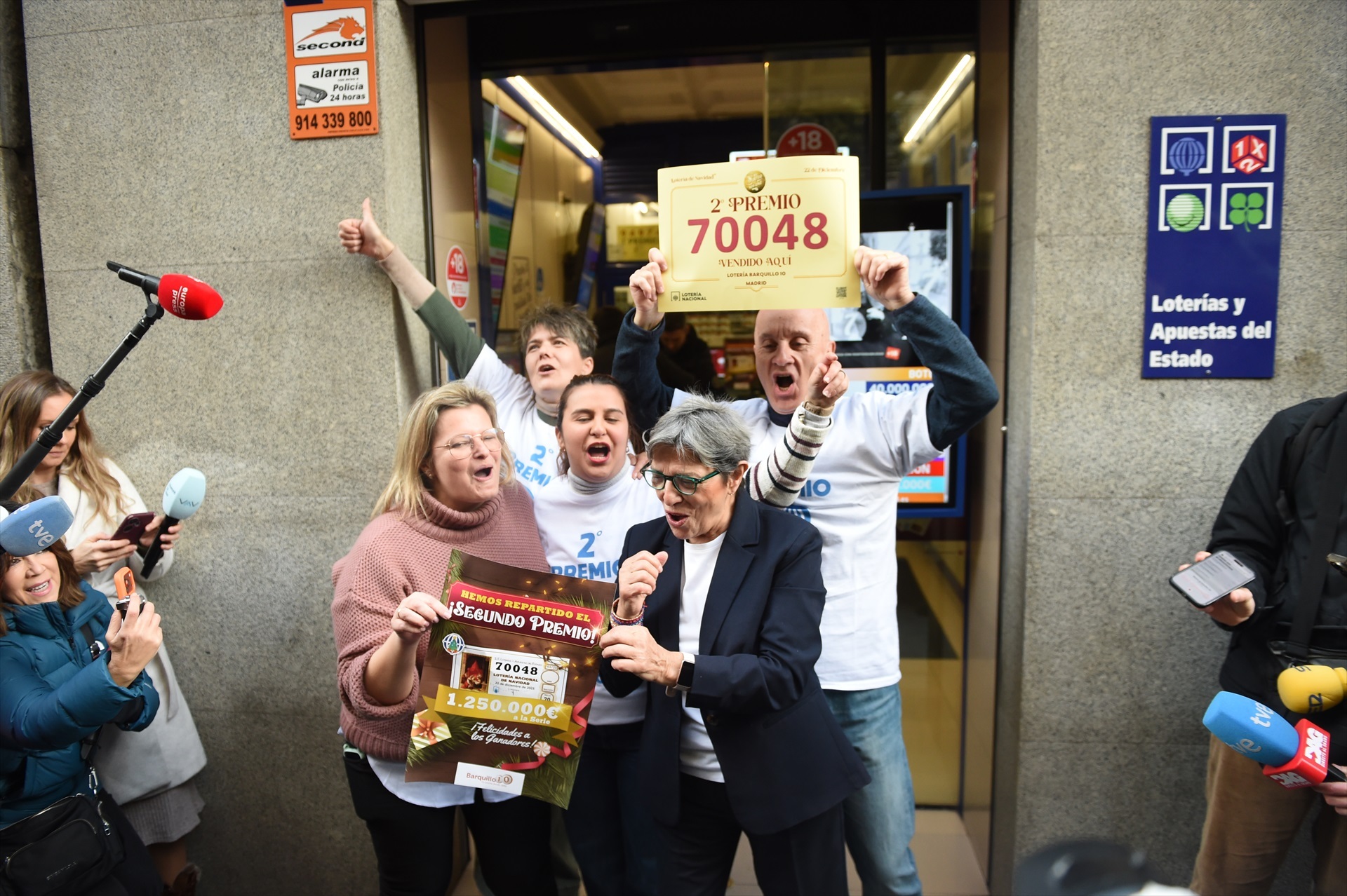 También en Madrid se ha descorchado el champán en una administración "de toda la vida del barrio", la del número 10 de la calle Barquillo, que ha vendido íntegro el Segundo Premio, el 70.048. Han vendido un total de 247,5 millones de euros en 198 series.