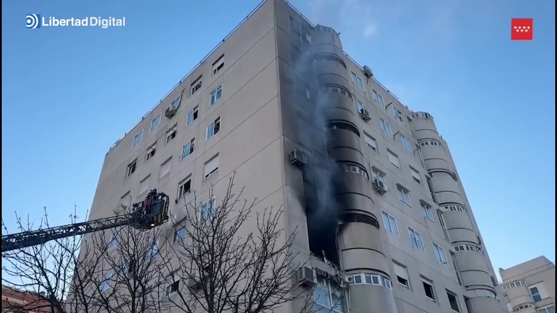 Imágenes y declaraciones del oficial de BomberosCM, Víctor Prieto, y de la jefa de guardia de SUMMA 112, Lourdes Camacho, recogen la intervención en un incendio registrado en un edificio de viviendas de Fuenlabrada.