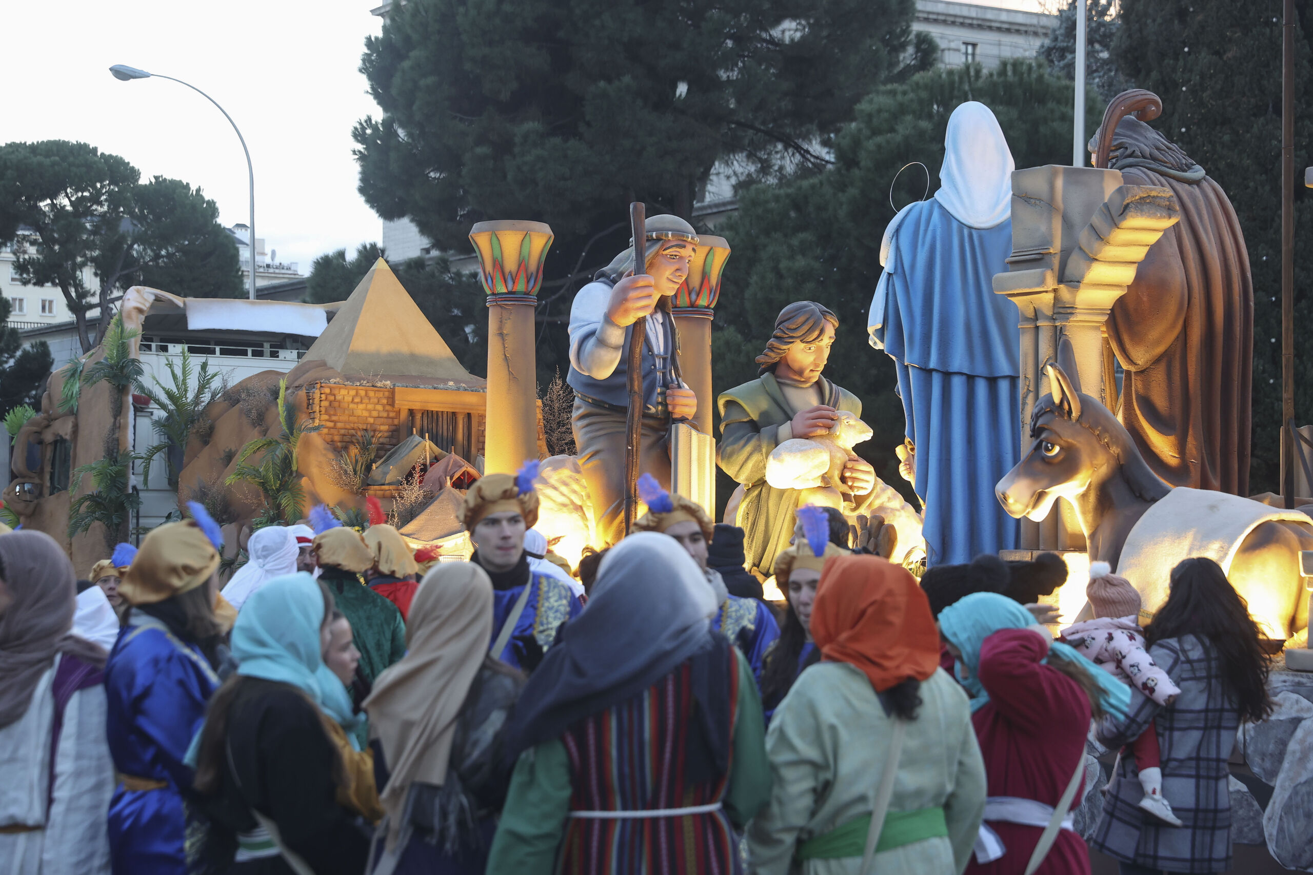 Cientos de pajes acompañan a los Reyes Magos repartiendo magia e ilusión a lo largo del desfile. El centro de Madrid se llena de luz y color con el paso del cortejo real camino de Cibeles.