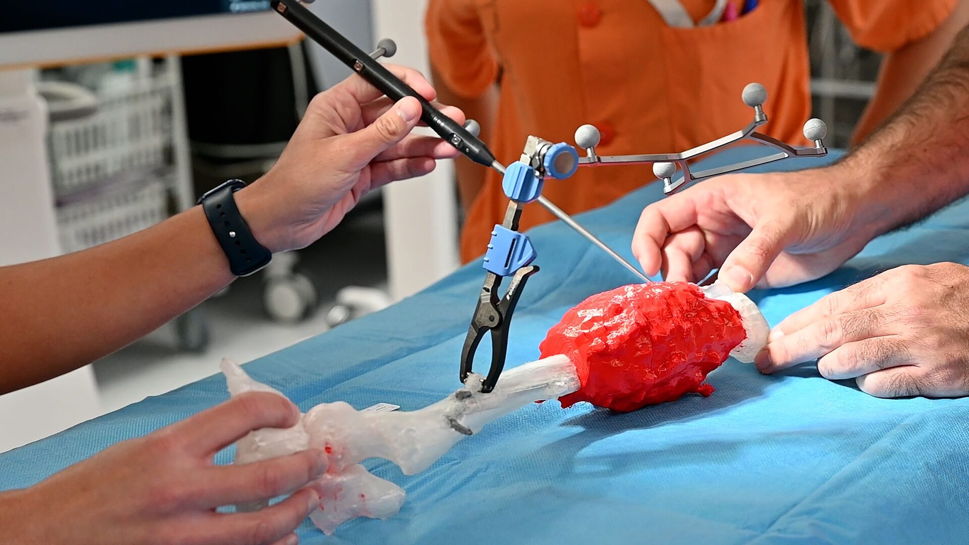 Esta cirugía de gran complejidad fue previamente ensayada por la Unidad de Planificación Avanzada y Manufactura 3D del Gregorio Marañón, con un gemelo digital (biomodelo virtual del fémur) del paciente. Gracias a este avance, los facultativos diseñaron guías de corte personalizadas para retirar los clavos y extirpar el tumor con márgenes seguros, evitando manipular zonas sanas del hueso. De esta manera, se anticiparon riesgos, se mejoró la coordinación de los profesionales y se optimizaron los tiempos de ejecución de la intervención.