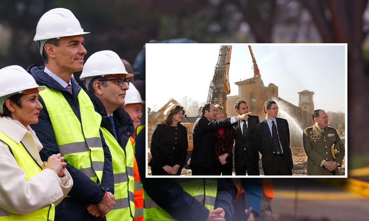 El paralelismo lo recordó este lunes Esperanza Aguirre, presidenta de la Comunidad de Madrid en aquel momento y asistente al acto de 2006. "Yo recuerdo haber asistido a un acto exactamente igual con Zapatero hace 20 años, con derribo de edificio incluido", escribió en redes sociales, en reacción al evento celebrado ahora por Sánchez.