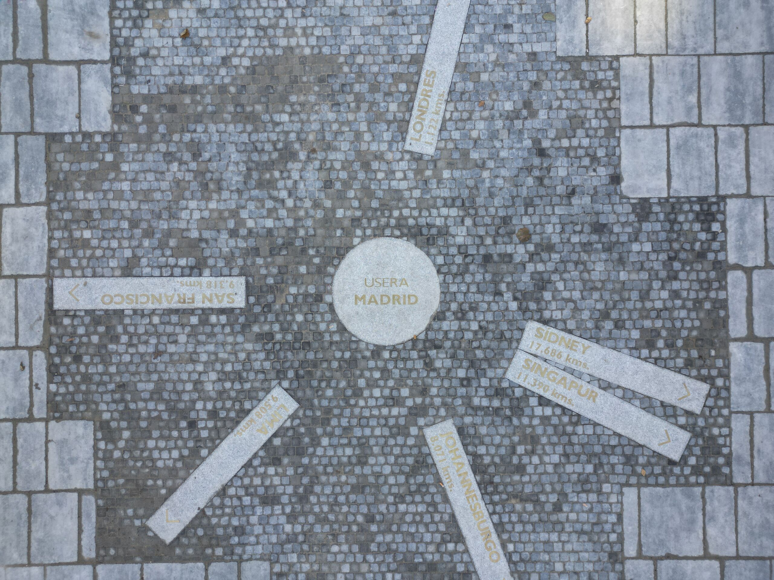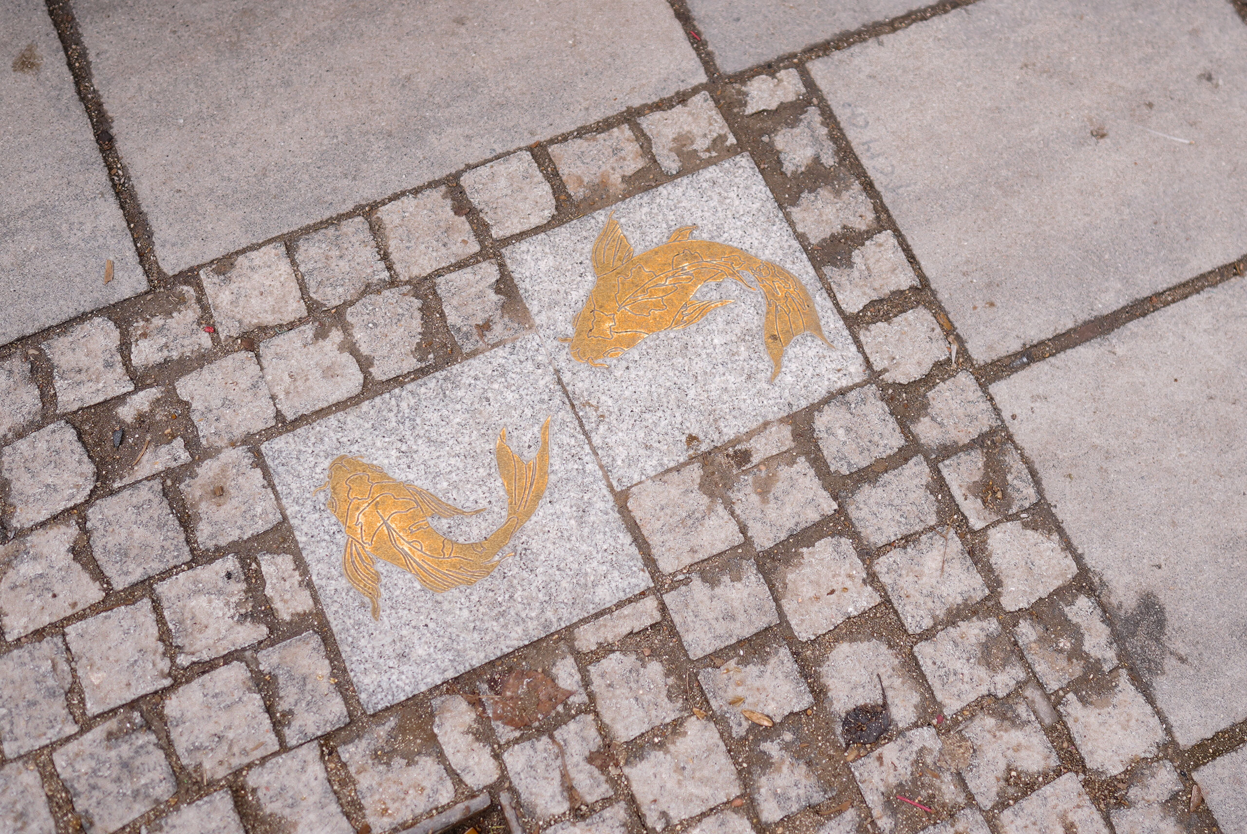 Detalle del nuevo pavimento con símbolos inspirados en la cultura china y europea.