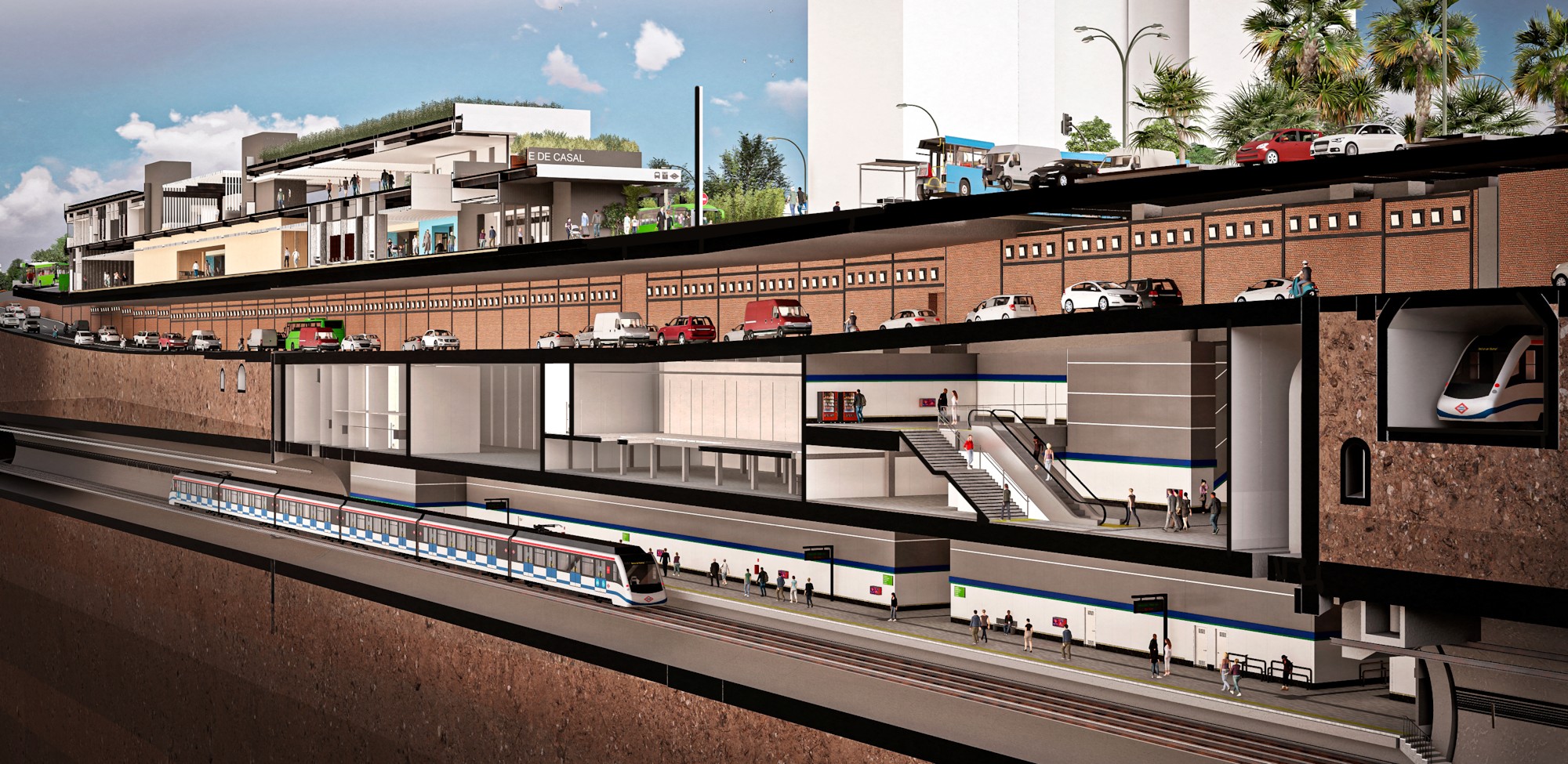 La estructura bajo rasante, vinculada a la ampliación de la L11, comenzó en febrero de 2025 y alcanza actualmente un grado de ejecución del 30%. Por este motivo, el Consorcio Regional de Transportes de Madrid ha mantenido un seguimiento continuo del proyecto y continuará desplegando un plan específico para minimizar las afecciones al tráfico, con actuaciones de señalización, reorganización del entorno y refuerzo de los servicios necesarios para garantizar el correcto funcionamiento del transporte público.