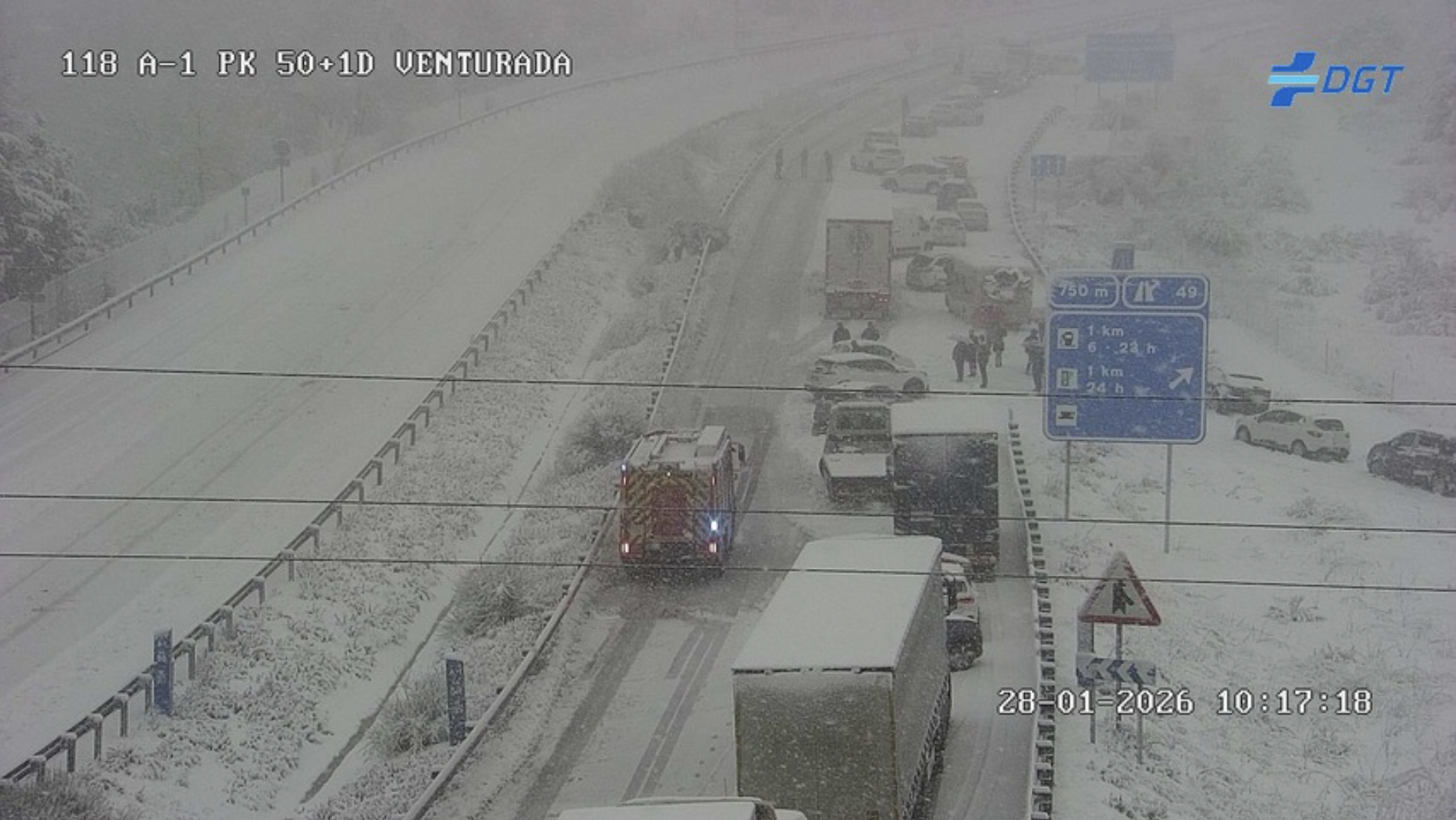 Varios de estos Ayuntamientos de la sierra madrileña y alrededores han cancelado toda actividad lectiva y municipal. En el kilómetro 50 de la A-1, a la altura de Venturada, se han visto imágenes de coches parados atrapados.