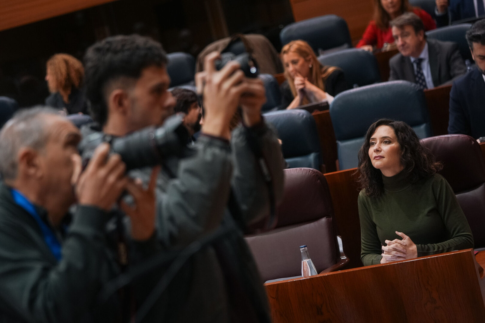 Por su parte, la portavoz de Más Madrid, Manuela Bergerot, comenzó su intervención mandando "toda la solidaridad" a la denunciante que "fue víctima del acoso laboral y sexual" del alcalde de Móstoles. "Señora Ayuso, esta mujer le pidió ayuda a usted en dos ocasiones. Le pidió ayuda a usted porque confiaba en usted y, sin embargo, usted rechazó tener una reunión con ella y recibió al agresor cinco días después", lanzó a la presidenta, a quien exigió que pida perdón. Entonces Ayuso le preguntó dónde queda su "presunción se inocencia" ante los "insultos y ataques diarios" que recibe por su parte.