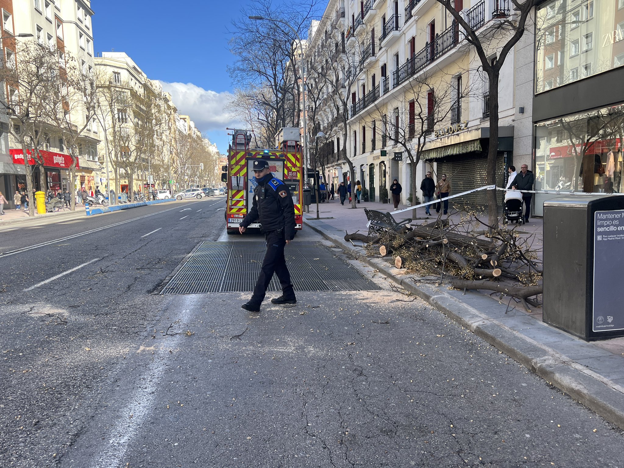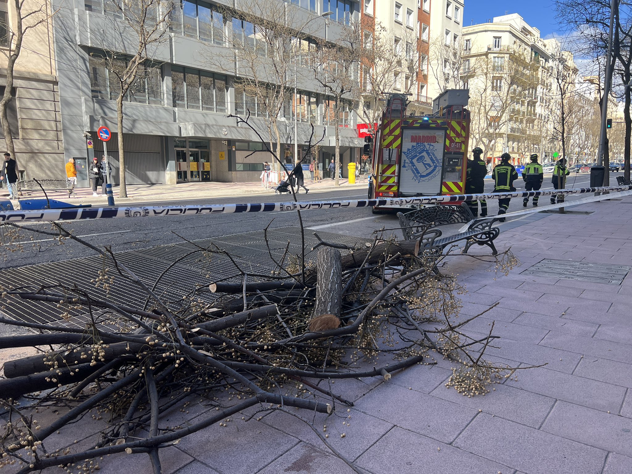 Sábado de vendaval en Madrid: árboles caídos, fachadas dañadas y más de 300 intervenciones