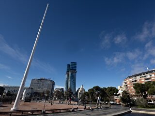 El mástil donde ondea la bandera, de unos 50 metros de altura, responde a los criterios de exhibición de la enseña nacional en este céntrico espacio urbano, situado junto a los Jardines del Descubrimiento y bajo la responsabilidad de la Armada Española en coordinación con el Ayuntamiento de Madrid.