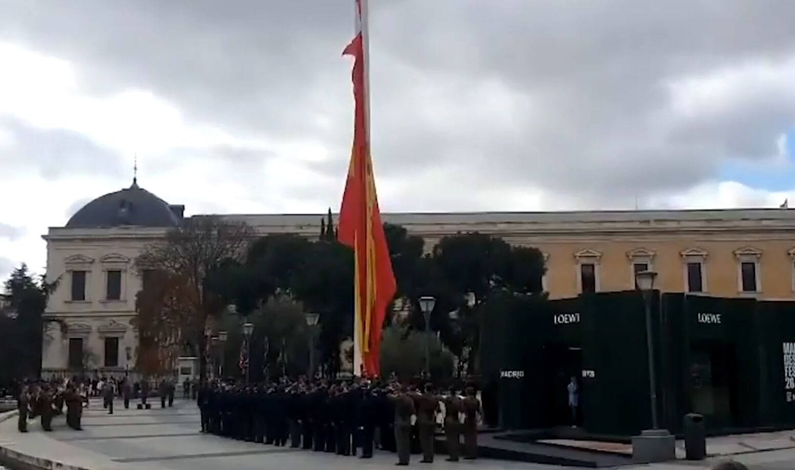 La enseña, que con sus cerca de 294 metros cuadrados es una de las más grandes del país, había sido recientemente reemplazada tras haber sido dañada por los fuertes vientos y temporales que han afectado a la capital en las últimas semanas, incluidos los efectos de las continuas borrascas que han azotado con dureza a España.
