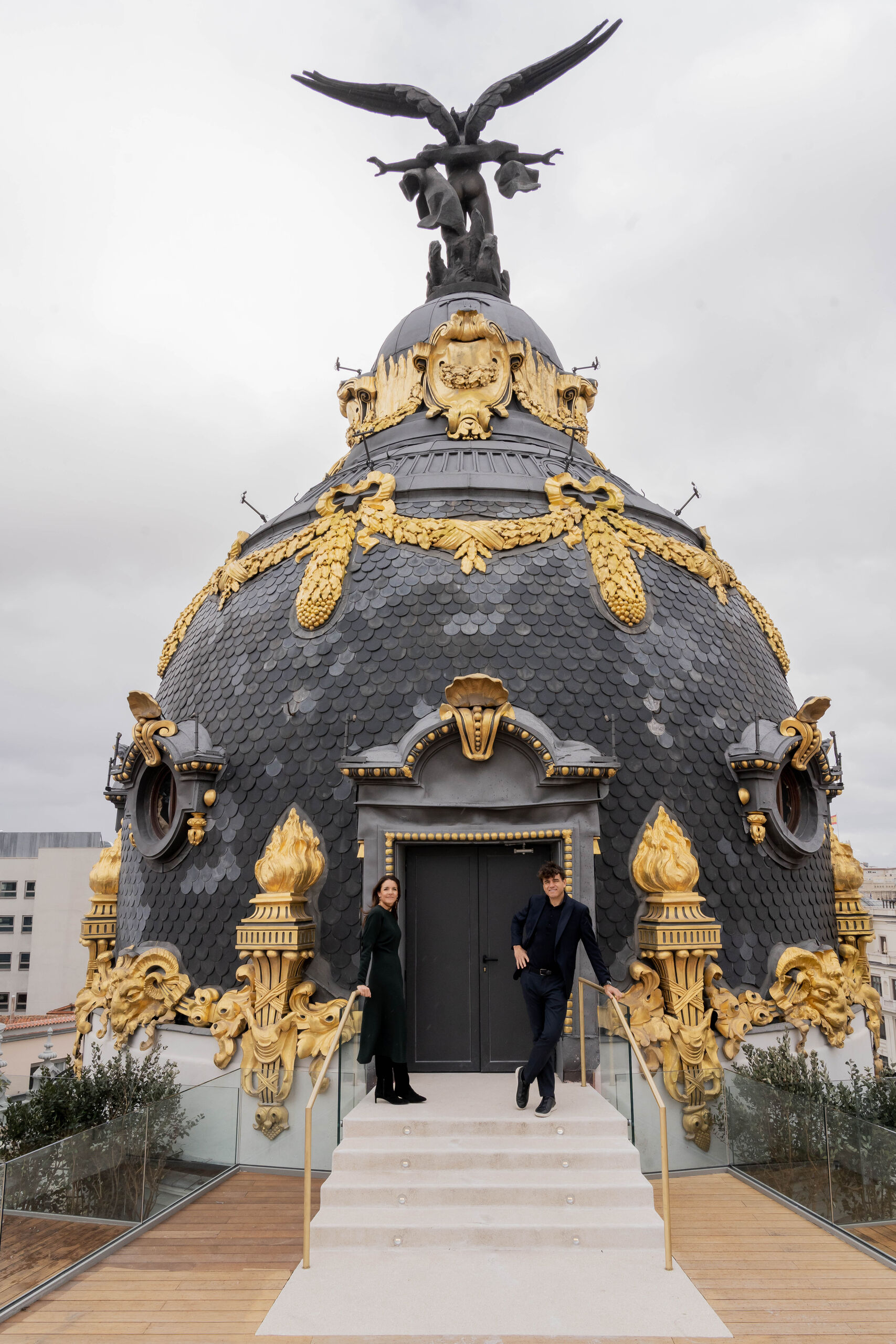 Como broche final, en la parte superior del edificio se accede uno de los espacios más exclusivos para los socios del club: un rooftop junto a la histórica estatua de la Victoria Alada que corona el edificio. La terraza incluye una zona de parrilla llamada “El Jardín" y un bar de cócteles con el nombre “La Cúpula”.