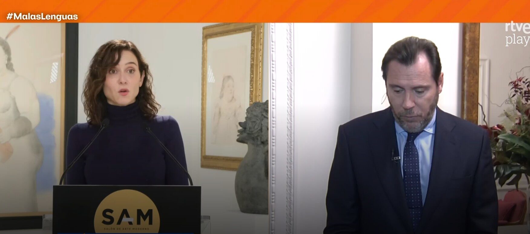 "A nosotros nos parece muy llamativo que el No a la guerra provenga de una persona que promueve la guerra entre españoles". Estas palabras pronunciadas por Isabel Díaz Ayuso se las pusieron al ministro de Transportes, Óscar Puente, en el programa de TVE, Malas Lenguas, de Jesús Cintora.